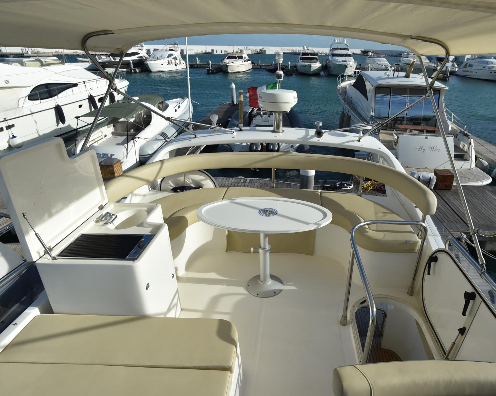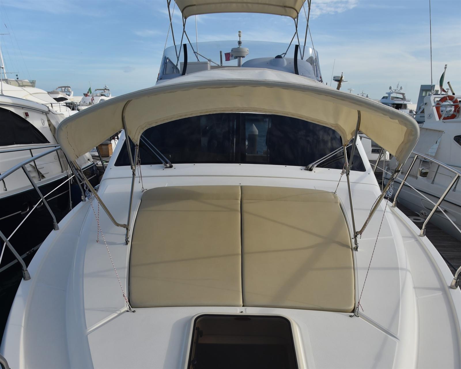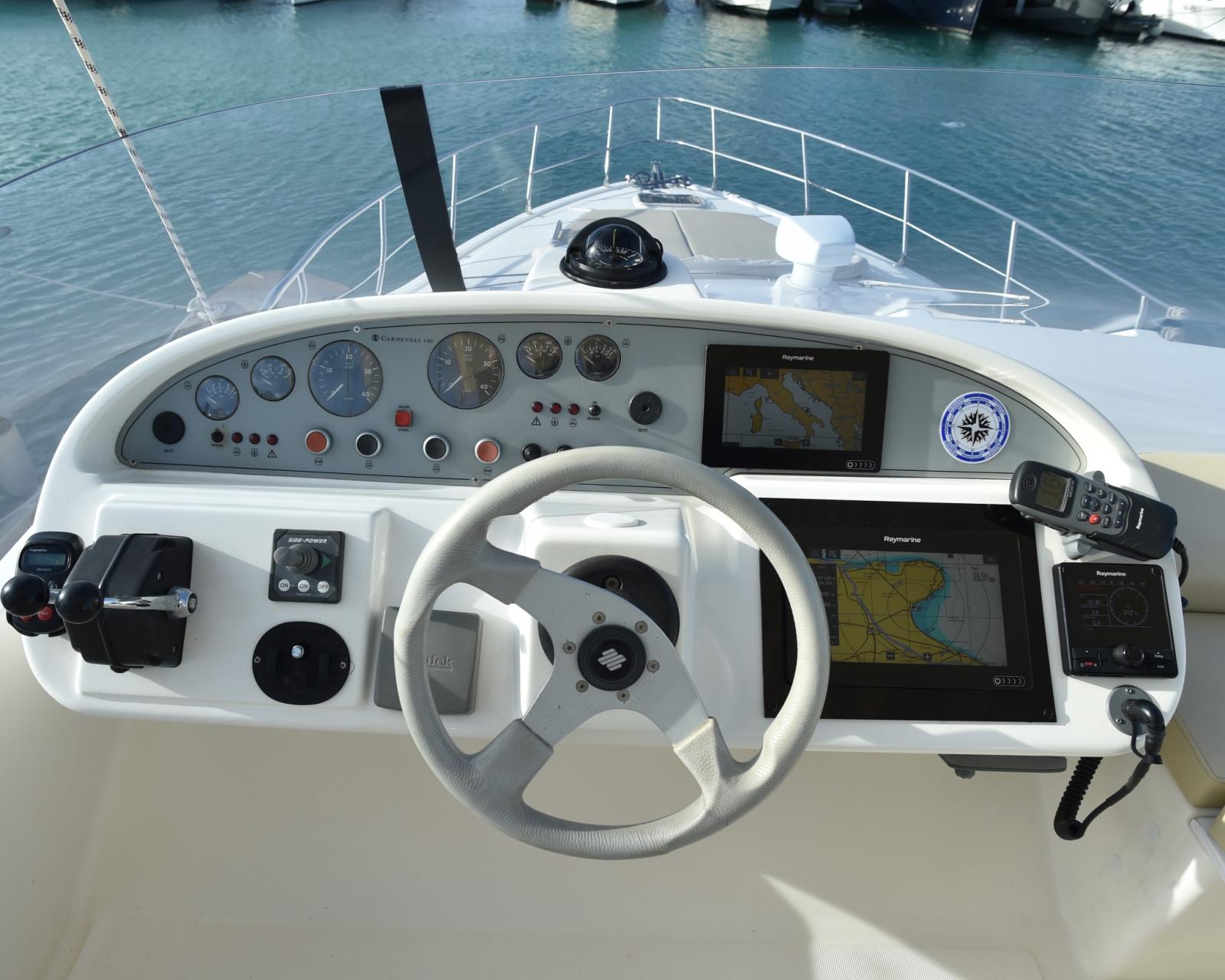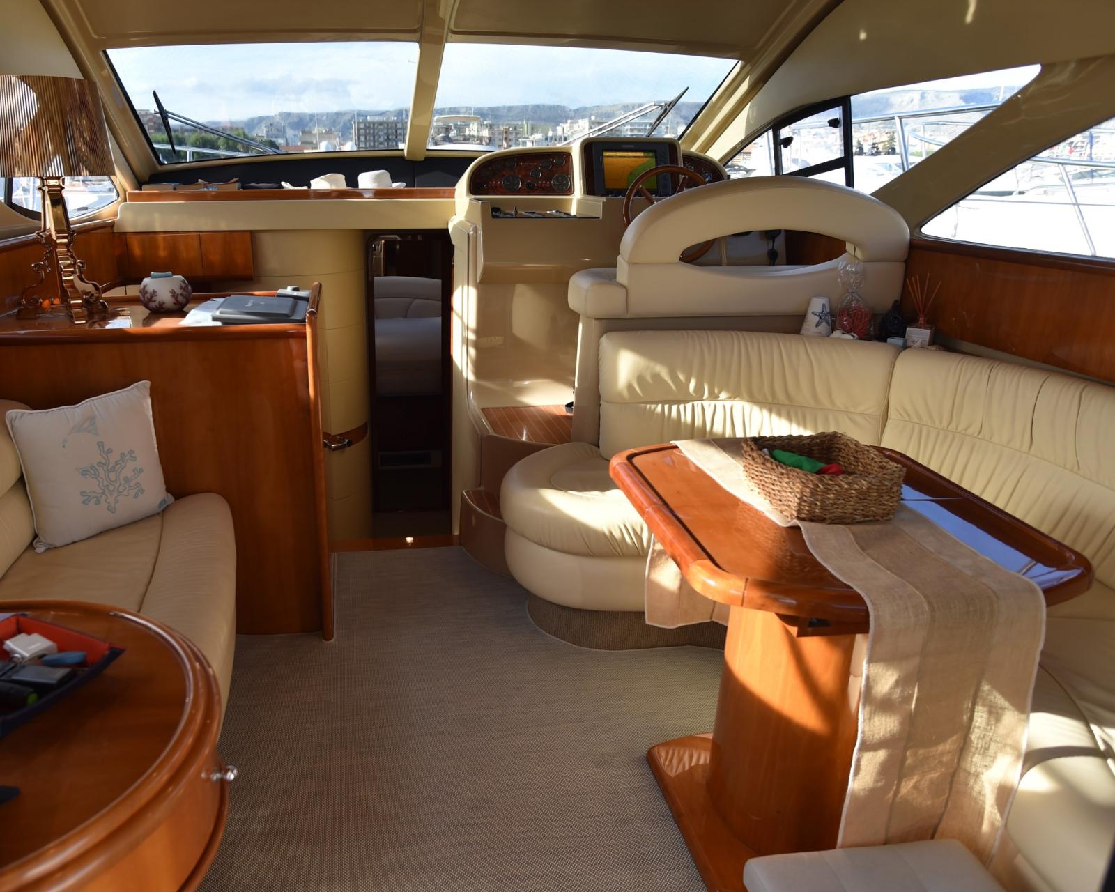 Eau sous pression, 5 Batteries, Douche de cockpit, Double barre à roue, Phare de poursuite, Passerelle (INOX BESENZONI), Pompe de cale automatique, Porte latérale, Cockpit en teck, Prise de quai, Connexion eau sous pression à quai, Guindeau électrique, Echelle de bain.