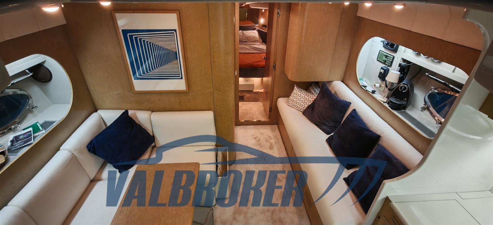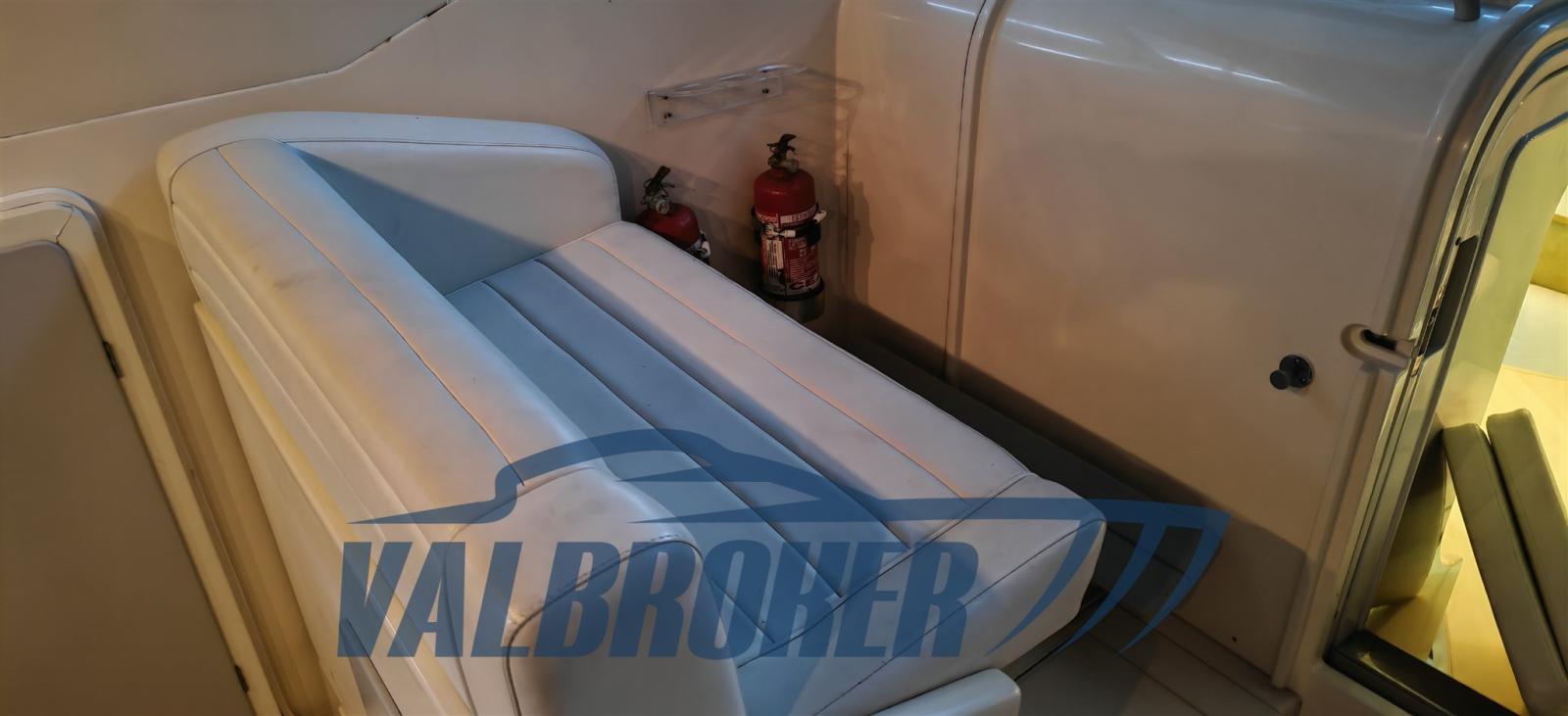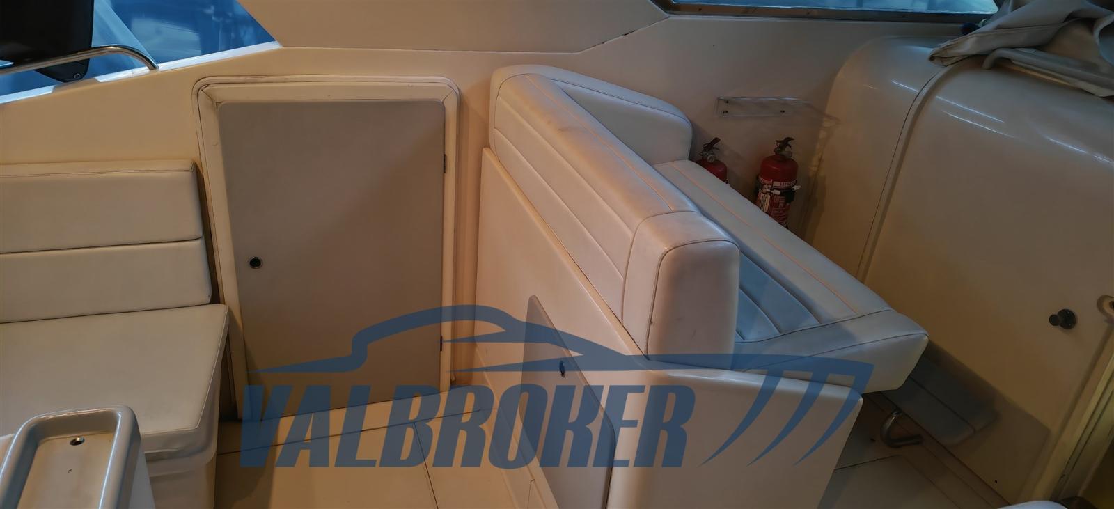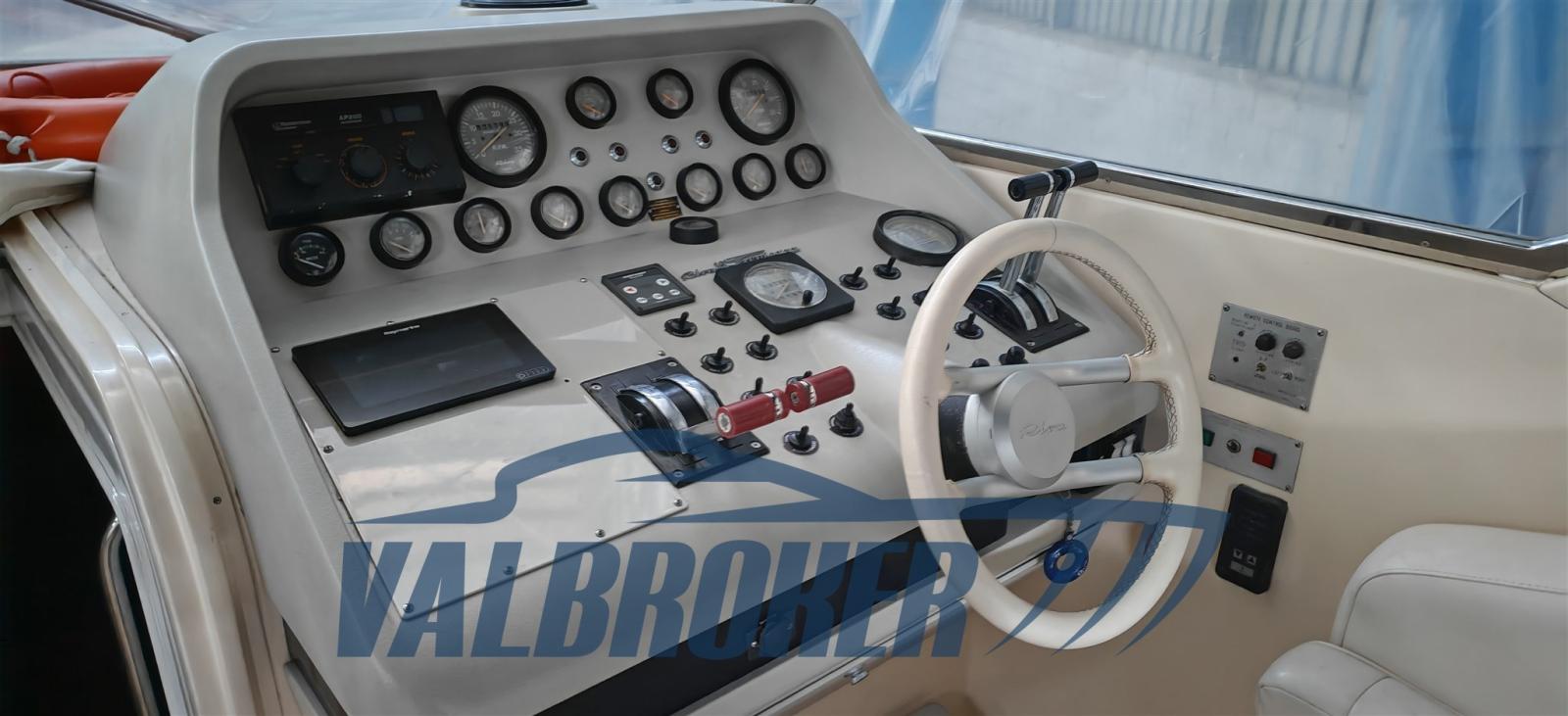 Coque puissante et solide avec de hautes remparts pour protéger le cockpit. Cabine avant et salle de bain séparée, salle à manger décapotable. De nombreuses options sont installées : climatisation, générateur, propulseur d’étrave, radar. Bateau sur la terre ferme pour le stockage hivernal.