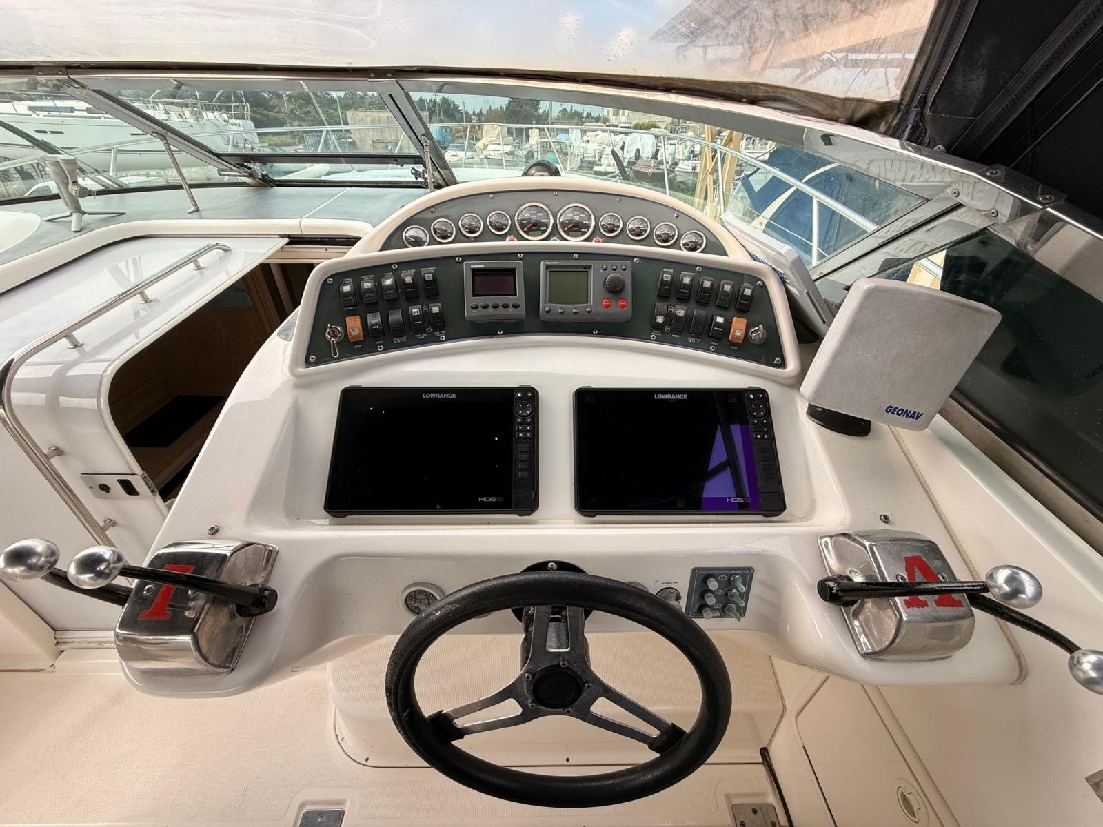propulsé par 2 Caterpillars de 435 CV, un bateau solide et élégant, idéal pour ceux qui recherchent confort, fiabilité et excellentes performances de navigation.