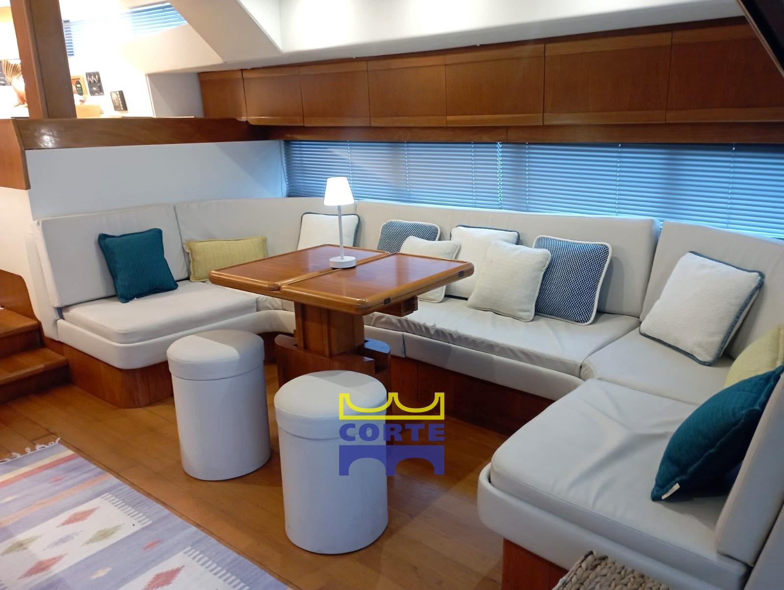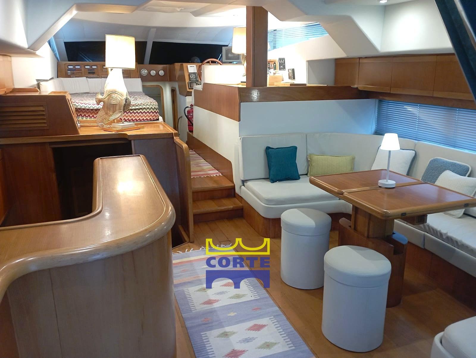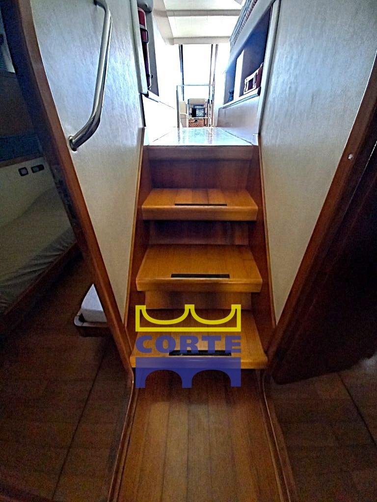 Eau sous pression, Douche de cockpit, Double barre à roue, Passerelle, Plateforme arrière (elettroidraulica), Porte latérale, Cockpit en teck, Prise de quai, Connexion eau sous pression à quai, Guindeau électrique, Echelle de bain, table de cockpit, Corne, 2 Winch électrique.