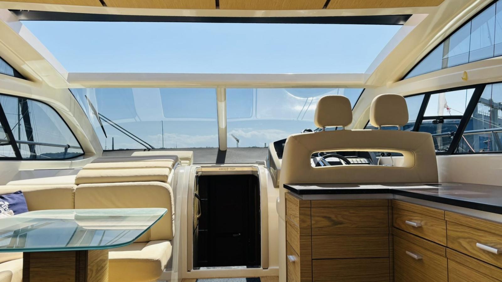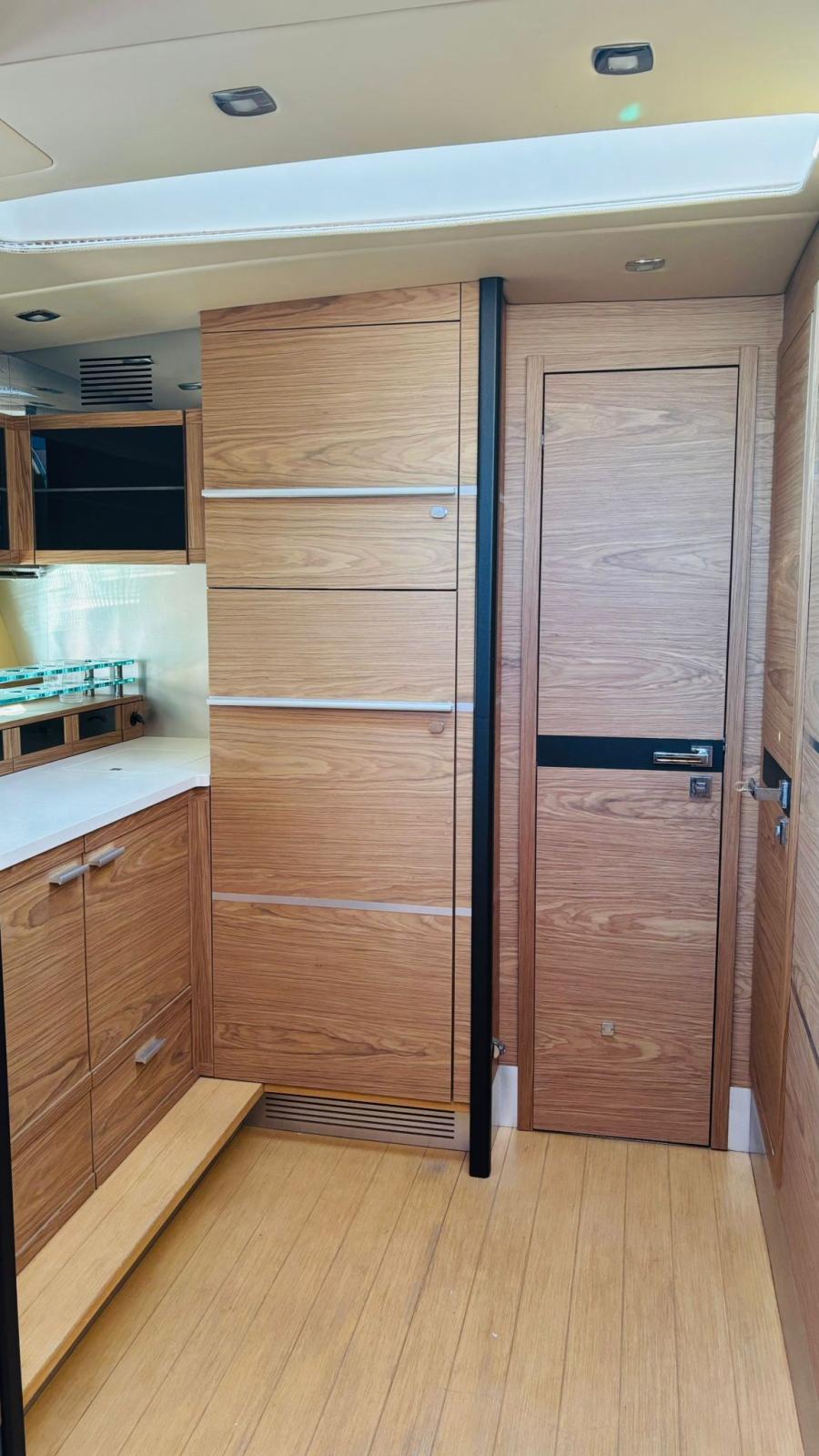 Alarme moteur, Alarme de pompe de cale, Alternateur, Eau sous pression, Passavant en teck, Câble d’alimentation à quai, Douche de cockpit, Phare de poursuite, Flaps hydrauliques (BENNET - CON INDICATORE DI POSIZIONE), Garage à annexe (Con apertura elettrica), Hard top, Spots sous-marins, 2 Panneau solaire (Montati sull’hard top), Passerelle, Pompe de cale automatique, Porte latérale, Cockpit en teck, Prise de quai, Guindeau électrique, table de cockpit, Annexe (Con fuoribordo Johnson 2,5).
