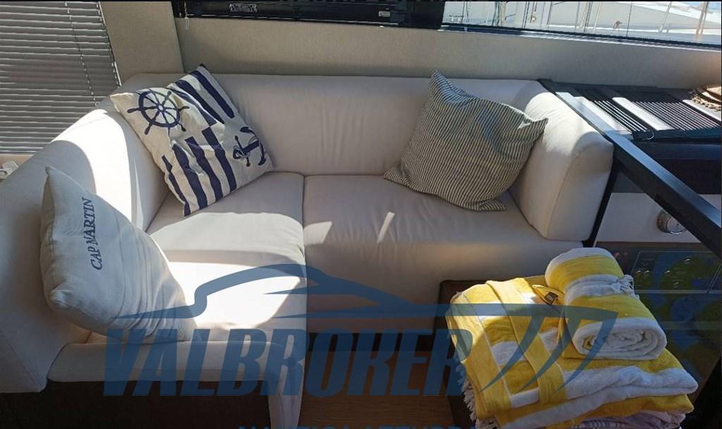 Propriétaire unique, enveloppant la coque Fairline d’origine demandée par le propriétaire en couleur gris anthracite. Double cuisine : dans le cockpit et sous le pont.
