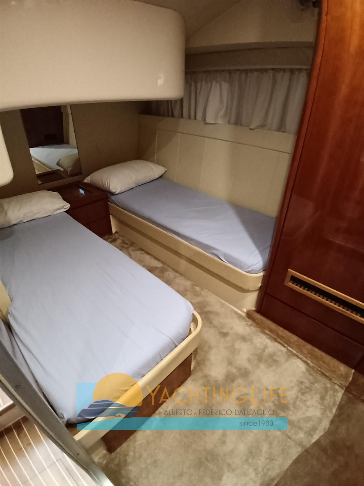 Alarme moteur, Alarme de pompe de cale, Eau sous pression, Douche de cockpit, Double barre à roue, Flaps hydrauliques, Indicateurs de flaps, Éclairage de courtoisie, Passerelle (idraulica), Plateforme arrière (allungata), Pompe de cale automatique, Porte latérale, Cockpit en teck, Prise de quai, Onduleur, Rollbar, Guindeau électrique, Echelle de bain, Corne.