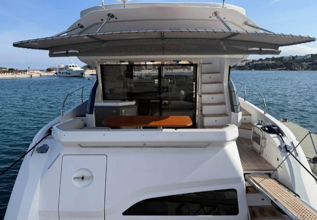 Flaps hydrauliques, Pont en teck, Porte latérale, Cockpit arrière, Cockpit en teck, Prise de quai, Guindeau électrique.