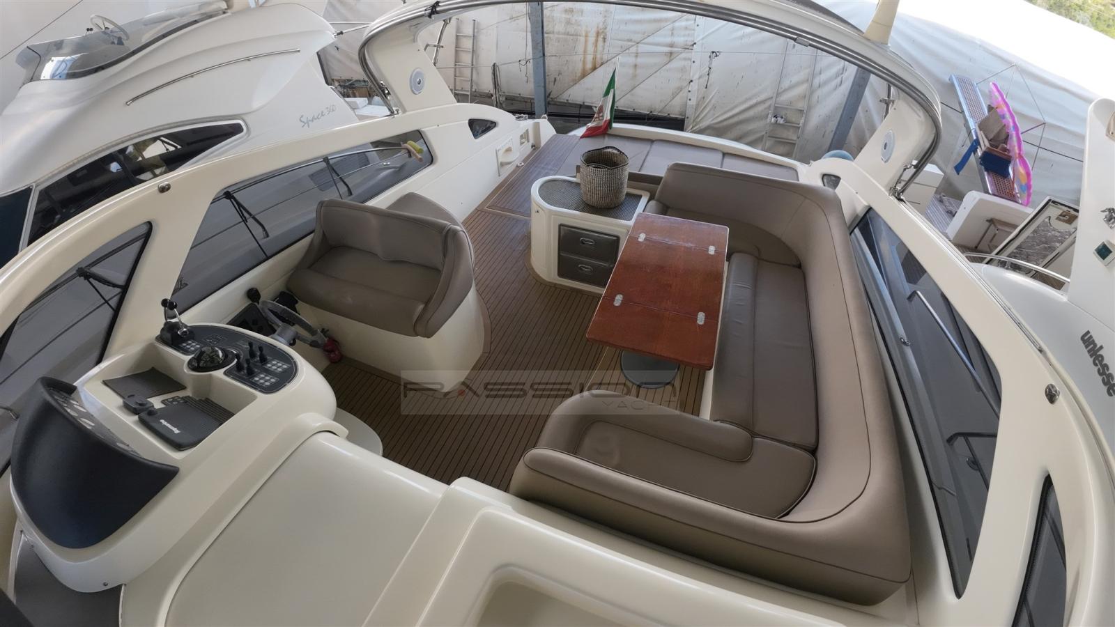 Alarme moteur, Alarme de pompe de cale, Eau sous pression, Radeau de sauvetage (coastal 2025), Chargeur de batterie (Mastervolt), Câble d’alimentation à quai, Couleur spéciale (Wrapping grigio metallizzato), Douche de cockpit, Propulseur d'étrave (Side Power), Flaps hydrauliques, Éclairage de courtoisie, Défenses, Passerelle (idraulica a scomparsa), Pompe de cale automatique, Pompe de cale manuelle, Prise de quai, Rollbar, Guindeau électrique, Echelle de bain, table de cockpit, Table pliante de salon, Winch électrique arrière.