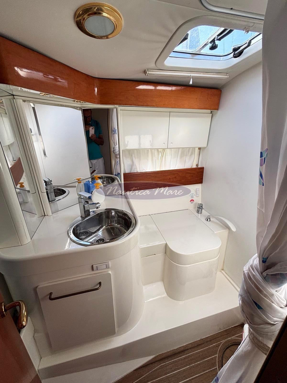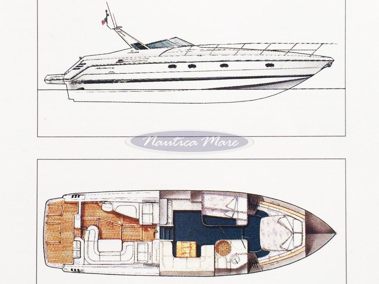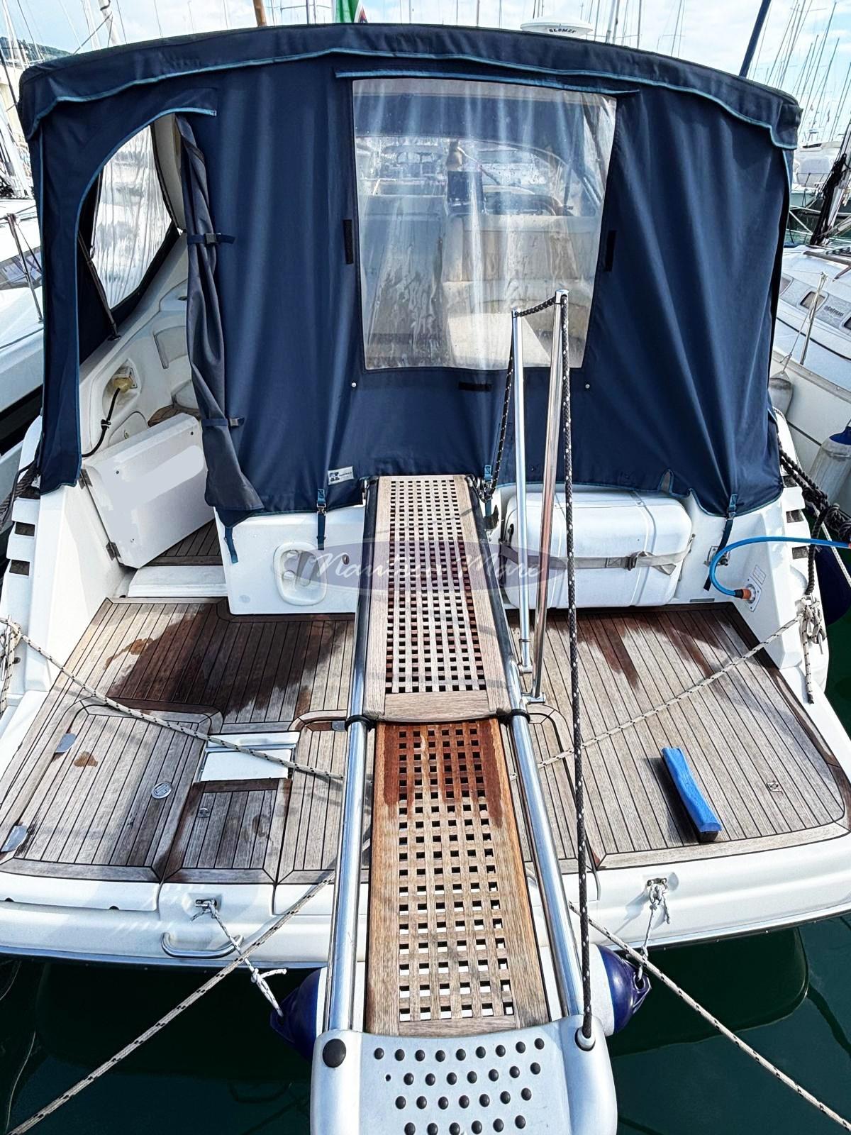 Alarme moteur, Alarme de pompe de cale, Eau sous pression, Douche de cockpit, Flaps hydrauliques, Éclairage de courtoisie, Moteur d'annexe, Défenses, Passerelle, Plateforme arrière, Pompe de cale automatique, Pompe de cale manuelle, Pont en teck, Porte latérale, Cockpit en teck, Prise de quai, Connexion eau sous pression à quai, Onduleur, Rollbar, Guindeau électrique, Echelle de bain, table de cockpit, Table pliante de salon, Annexe, Corne.