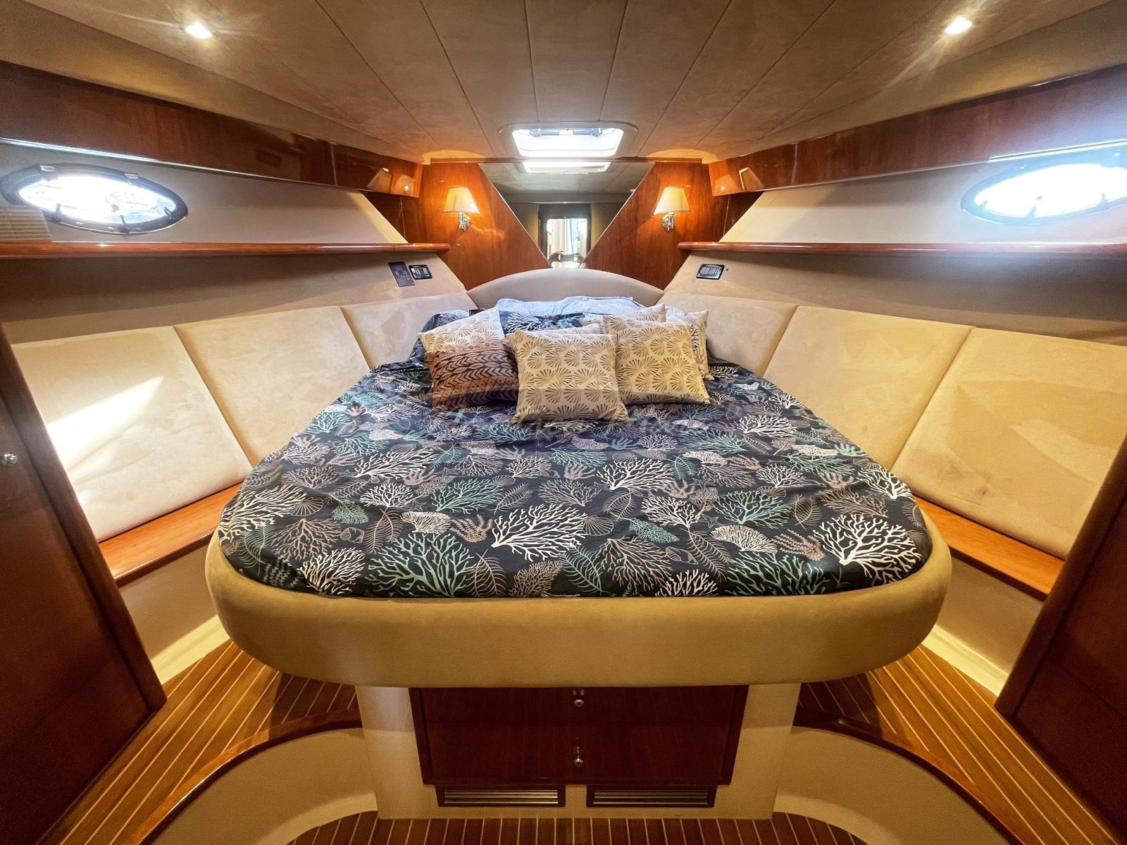 Sellerie complète, Coussins arrieres, Coussin avant (ampio prendisole), Sellerie de fly (ampio prendisole e divano), sellerie de cockpit, Matelas (nei letti delle cabine), Rideaux occultants, Tauds de pare-brise, Taud de console (sul fly), Taud de siège (sul fly), 2 Taud de soleil (doppio parasole sul fly), Rideaux (interne).