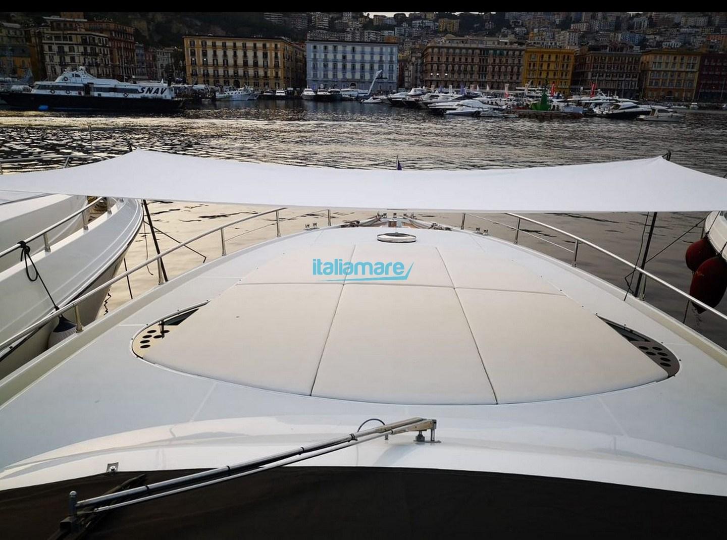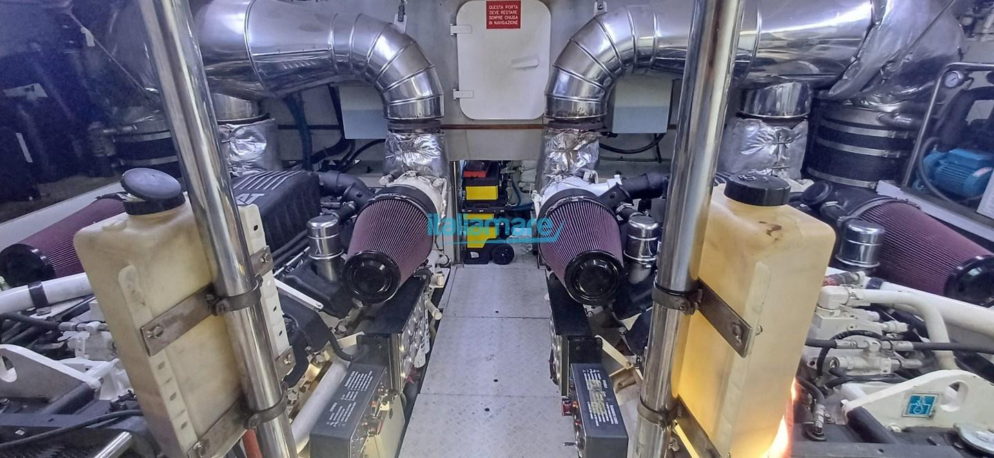 Alarme gaz, Alarme moteur, Alarme de pompe de cale, Eau sous pression, Douche de cockpit, Propulseur de poupe (SIDEPOWER), Propulseur d'étrave (SIDEPOWER), Flaps électriques, Garage à annexe (AD APERTURA IDRAULICA), Bossoirs pour annexe, Hard top, Extincteur(s) fixe(s), Indicateurs de flaps, Lavabo dans le cockpit, Éclairage de courtoisie, Spots sous-marins, Passerelle (IDRAULICA TELESCOPICA PIN-CRAFT), Plateforme arrière (IN TEAK), Pompe de cale automatique, Pompe de cale manuelle, Porte latérale, Cockpit en teck, Prise de quai, Connexion eau sous pression à quai, Guindeau électrique, Echelle de bain, table de cockpit, Annexe, Winch électrique arrière (MAXWELL 1500 W).