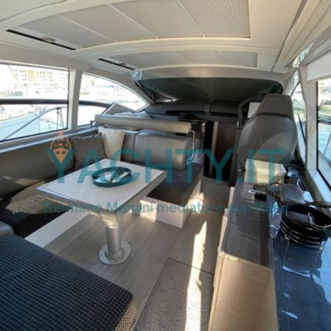 Les intérieurs élégants et lumineux abritent un saloon raffiné sur la terrasse principale avec un canapé, une table et une armoire en forme de « C » avec télévision rétractable. Sous le pont, on trouve une cuisine entièrement équipée et une disposition pour dormir composée de trois cabines doubles et deux salles de bains avec douches, conçues pour garantir intimité et confort même lors de longues croisières.