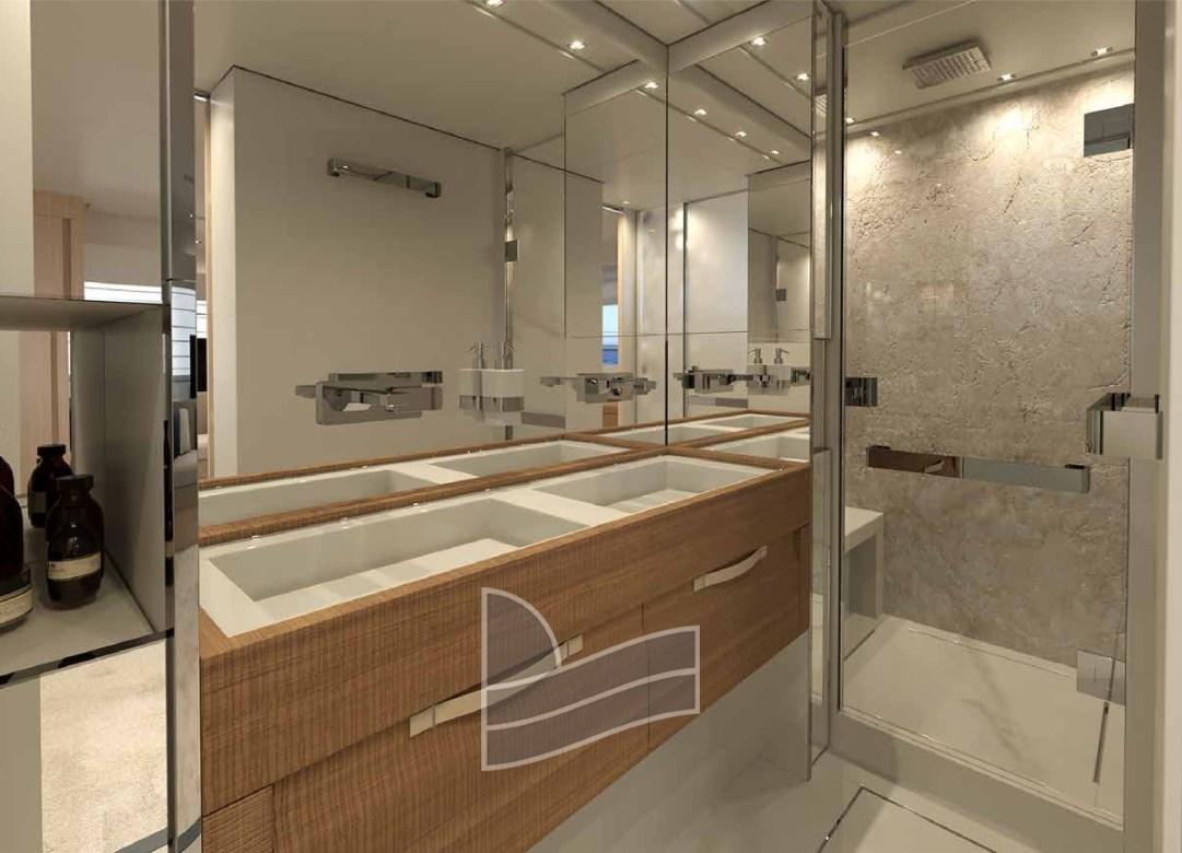 N. 4 grands hublots (730x530 cm) dans les cabines d’invités (2 fixes et 2 ouvribles), selon la disposition du bateau