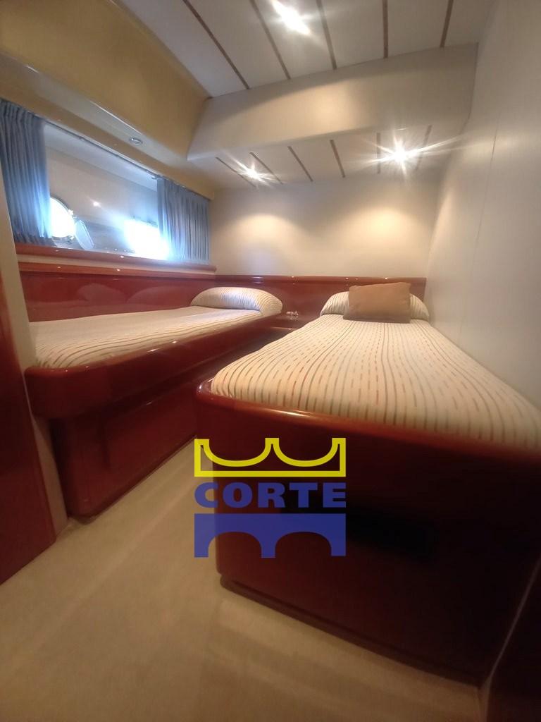 Alarme moteur, Alarme de pompe de cale, Eau sous pression, Câble d’alimentation à quai, Douche de cockpit, Double barre à roue, Phare de poursuite, Flaps hydrauliques, Bossoirs pour annexe (passerella), Extincteur(s) fixe(s), Indicateurs de flaps, Lavage de chaine, Lavabo dans le cockpit, Éclairage de courtoisie, Moteur hors-bord pour annexe, Défenses, Passerelle (elettro idraulica Besenzoni), Plateforme arrière (poppa), Pompe de cale automatique, Porte latérale, Cockpit en teck, Prise de quai, Connexion eau sous pression à quai, Rollbar, Guindeau électrique, Echelle de bain, table de cockpit, Annexe, Corne, 2 Winch électrique arrière, Winch électrique avant.