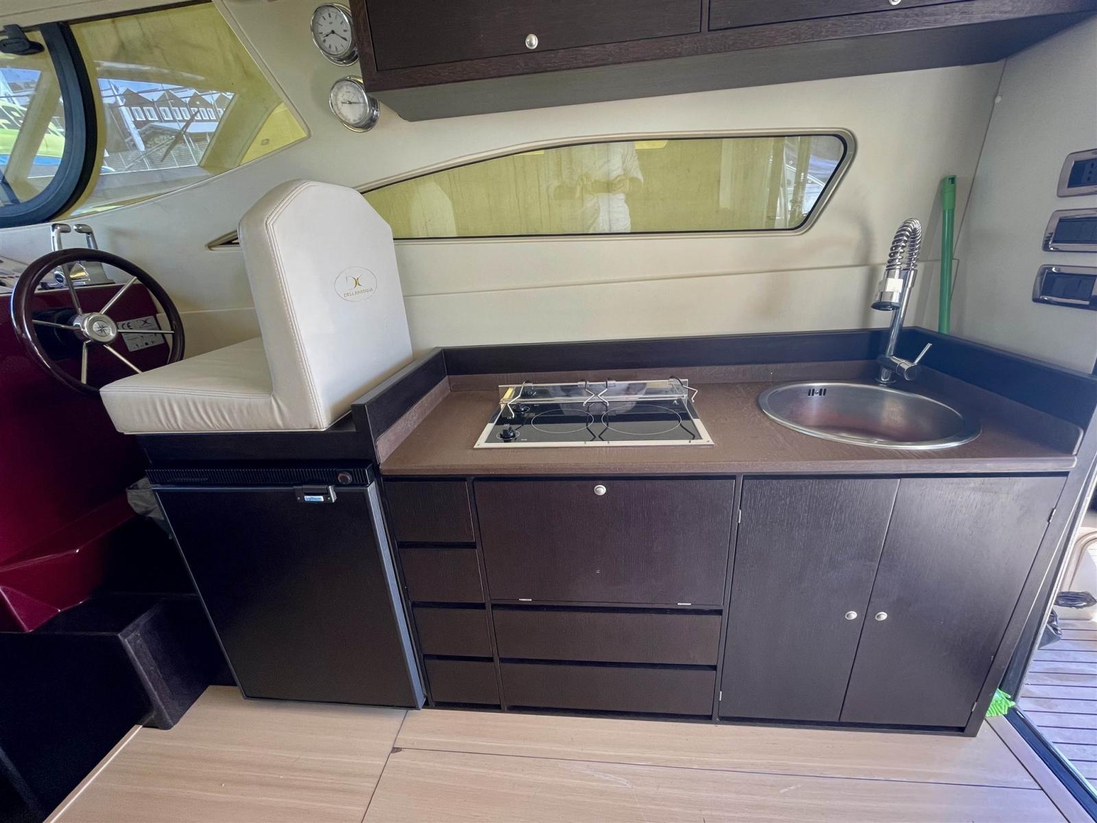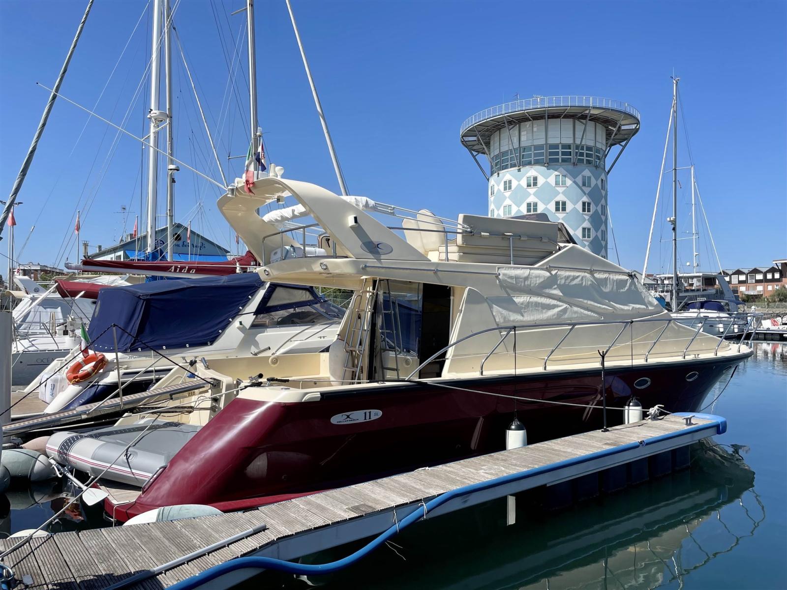 Alarme moteur, Couleur spéciale (Bordeaux hull), Douche de cockpit, Phares fixes arrière, Flaps électriques, Éclairage de courtoisie, Passerelle, 3 Pompe de cale automatique, Cockpit en teck, Prise de quai, Echelle de bain.