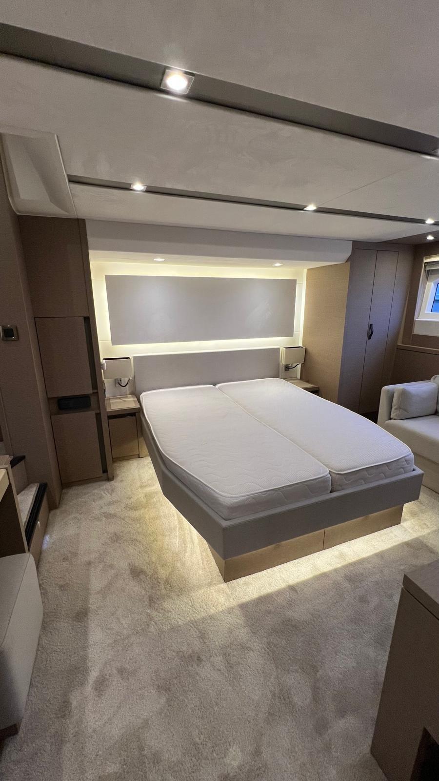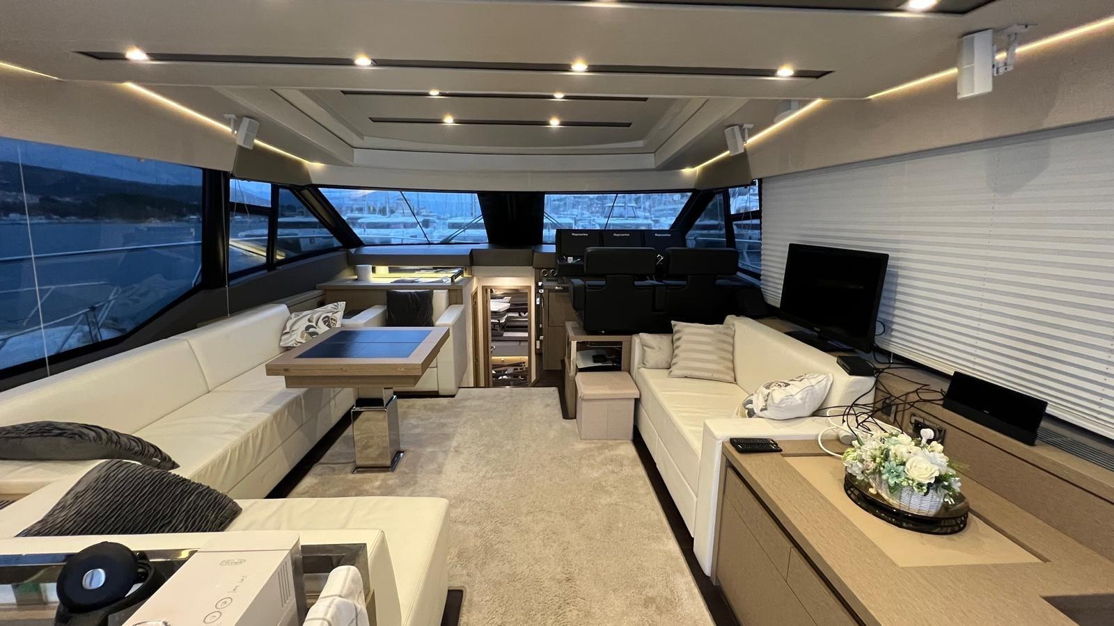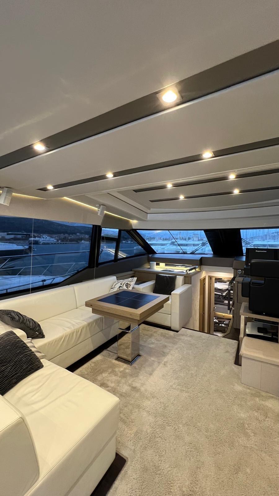 Ce navire élégant paraît rapide, mais l’accent est mis sur le confort de croisière. Deux Volvo Penta IPS 950 lui confèrent une vitesse maximale respectable de près de 30 nœuds avec une excellente réponse des gaz et une sensation sportive, bien que le bateau soit silencieux à l’intérieur comme à l’extérieur.