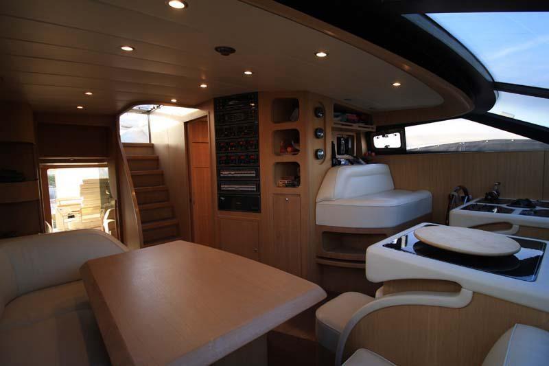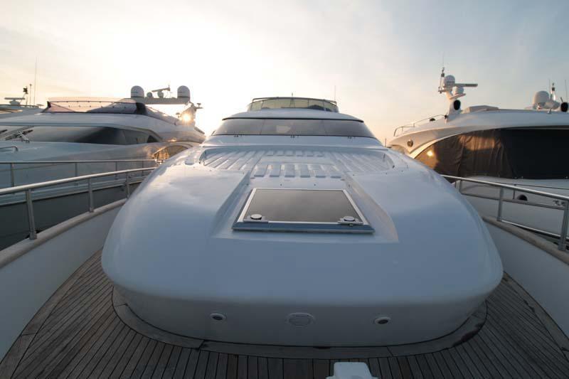 Alarme moteur, Alarme de pompe de cale, Phare de poursuite, Flaps hydrauliques, Bossoirs pour annexe, Extincteur(s) fixe(s), Passerelle (Elettroidraulica), Pont en teck, Porte latérale, Cockpit en teck, Echelle de bain, table de cockpit, 2 Winch électrique arrière.