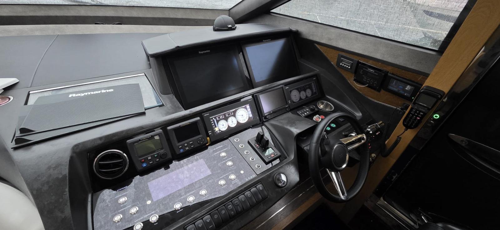 Alarme moteur, Alarme de pompe de cale, Passavant en teck, Phare de poursuite, Flaps hydrauliques, Garage à annexe, Extincteur(s) fixe(s), Lavabo dans le cockpit, Éclairage de courtoisie, Spots sous-marins, Passerelle, Porte latérale, Cockpit en teck, Echelle de bain, Stabilisateurs, table de cockpit, 2 Winch électrique arrière.