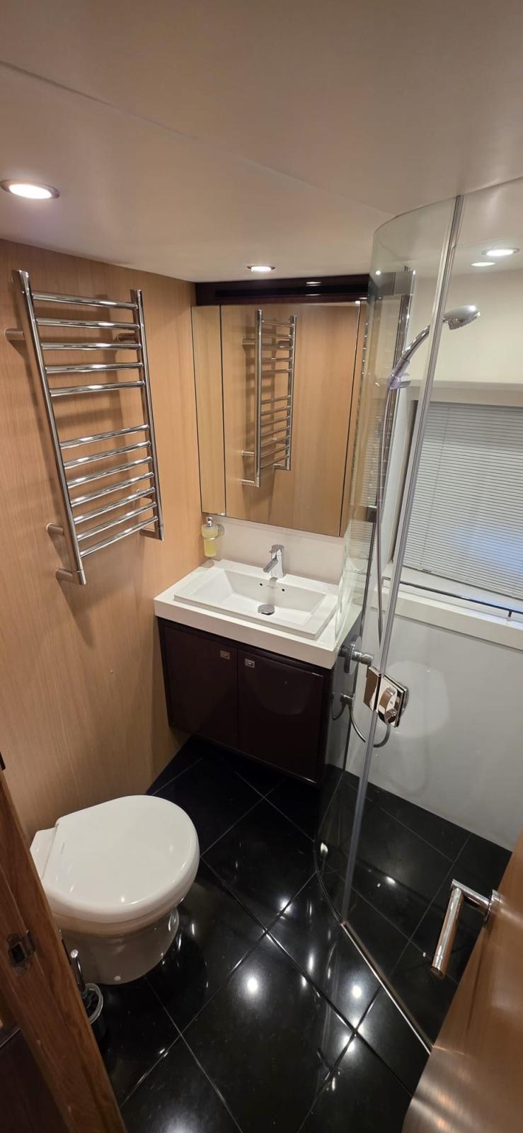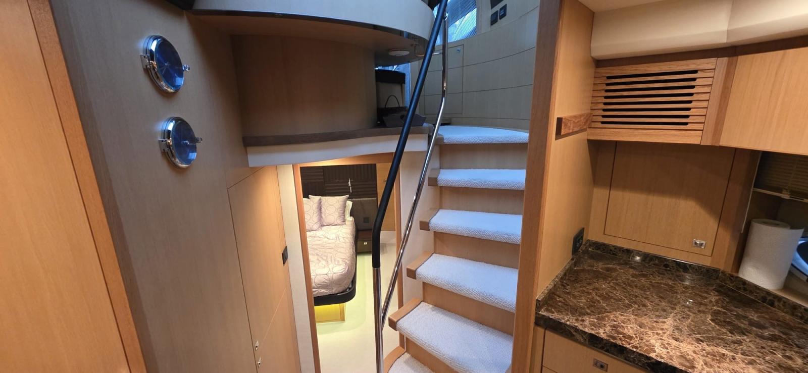les garnitures extérieures ont été renouvelées en 2023, les écrans Raymarine ont été remplacés en 2016 et la climatisation complète a été entièrement révisée en 2022. Le bateau dispose de trois cabines spacieuses, chacune avec sa propre salle de bain attenante. La cabine principale occupe toute la largeur de la