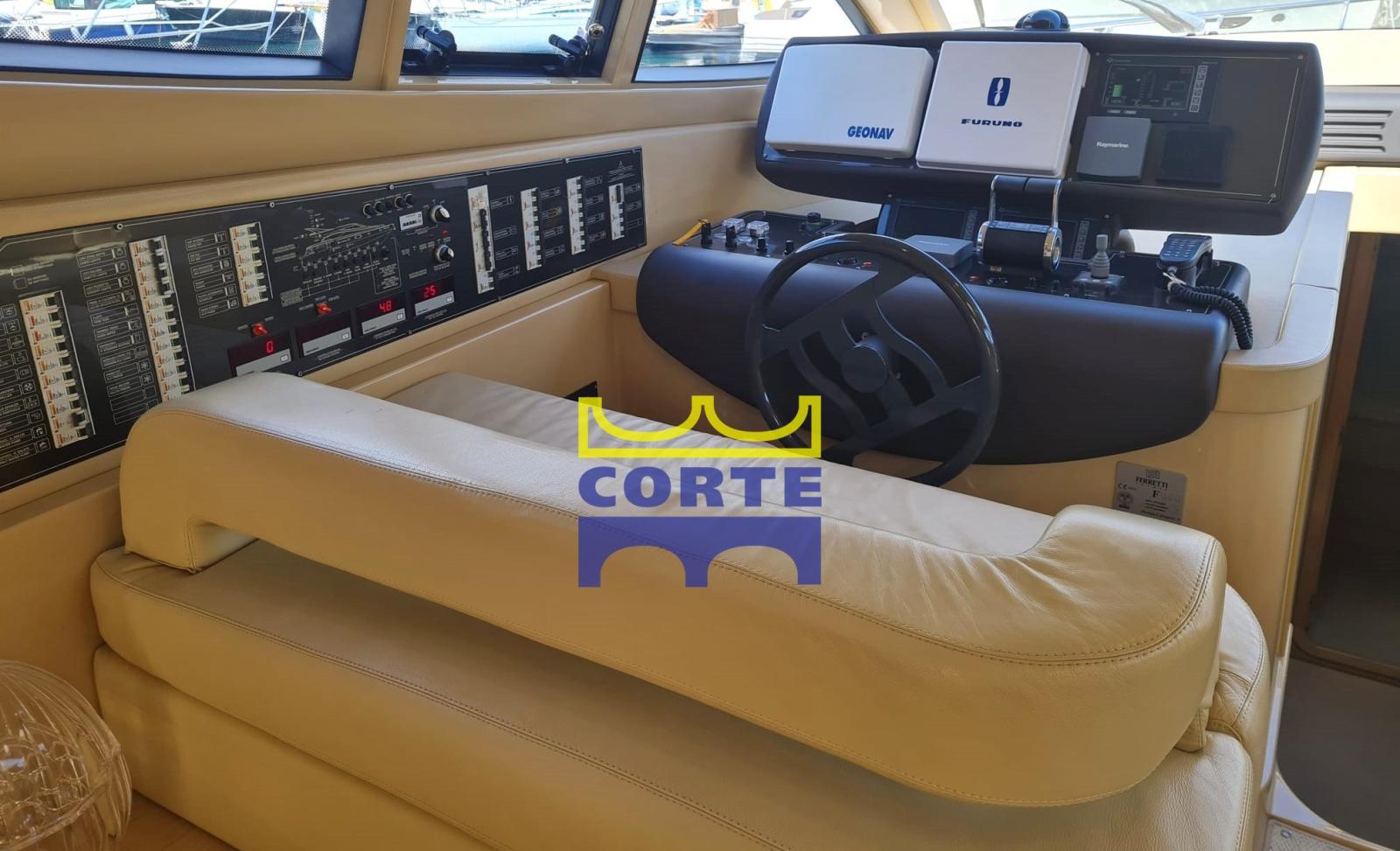Antenne radar, Compas (magnetica), Commande électrique, Moniteur (MAN per monitoraggio barca), Pilote automatique (Raytheon ST 6001 con interfaccia), Lecteur de cartes (Geonav 11"), Radar (Furuno), Radio VHF (Simrad RS82).