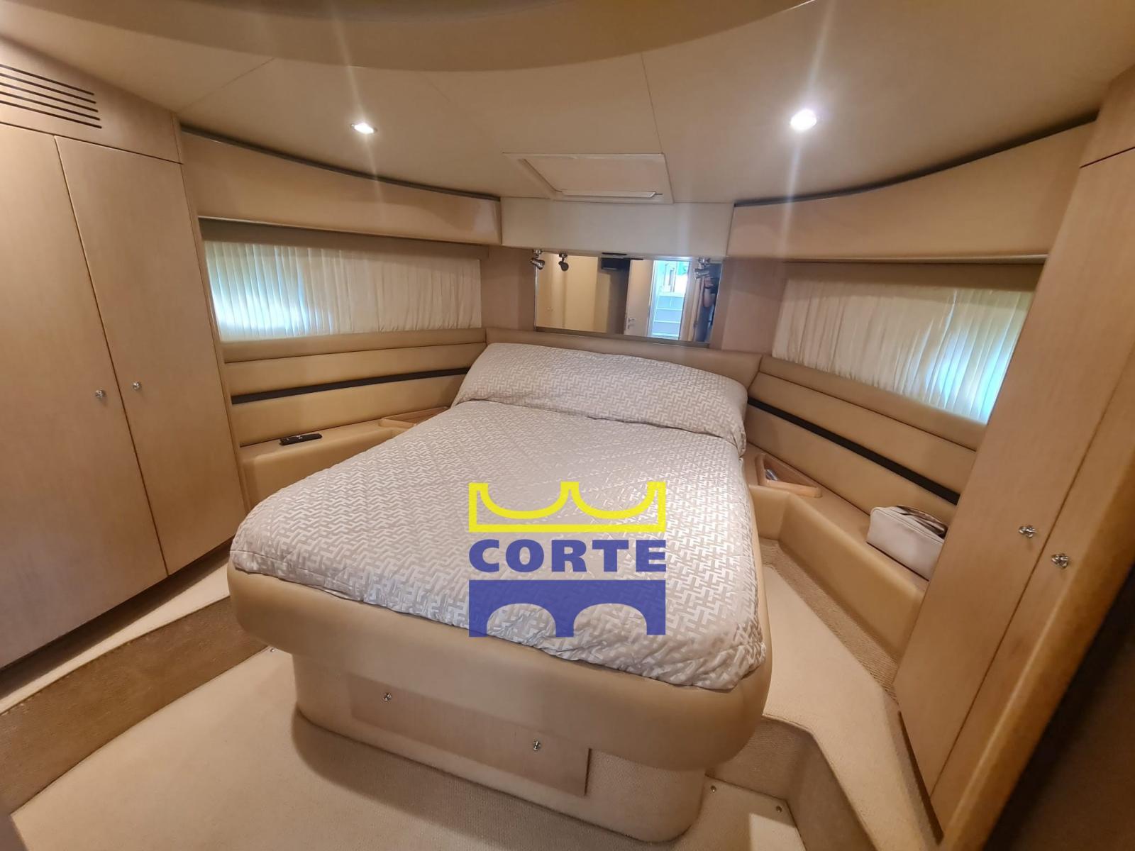 Cabine propriétaire à l’avant avec salle de bain ; Cabine d’invités gauche avec lits plats avec salle de bain ; Cabine d’invités droite avec lits plats avec salle de bain et cabine de douche séparée ; Cabine intérieure de l’équipage avec salle de bain séparée ; Cabine d’équipage arrière avec salle de bain.