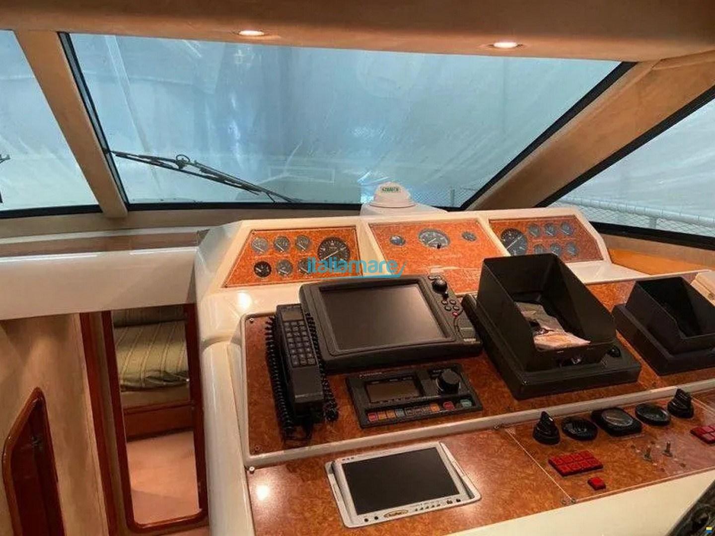 Accessoires principaux : Climatisation - Couvre-cockpit - Propulseur d’avant - GPS - Générateur - Passerelle - Plateforme de nage - Pilote automatique - Cockpit en teck - TV - Windlass électrique - Couvre-passerelle.