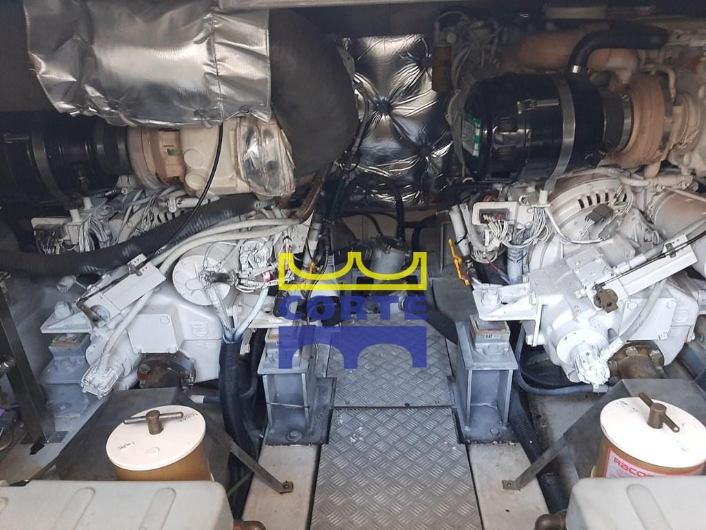 Alarme moteur, Alarme de pompe de cale, Eau sous pression, Chargeur de batterie (nuovo con dislpay controllo remoto), Douche de cockpit, Double barre à roue, Phare de poursuite, Flaps hydrauliques, Bossoirs pour annexe (passerella), Spots sous-marins (sotto piattaforma di poppa), Passerelle (idraulica), Plateforme arrière (poppa in teak), Pompe de cale automatique, Porte latérale, Cockpit en teck, Prise de quai, Rollbar, Guindeau électrique, Echelle de bain, Corne, Winch électrique arrière, Winch électrique avant.
