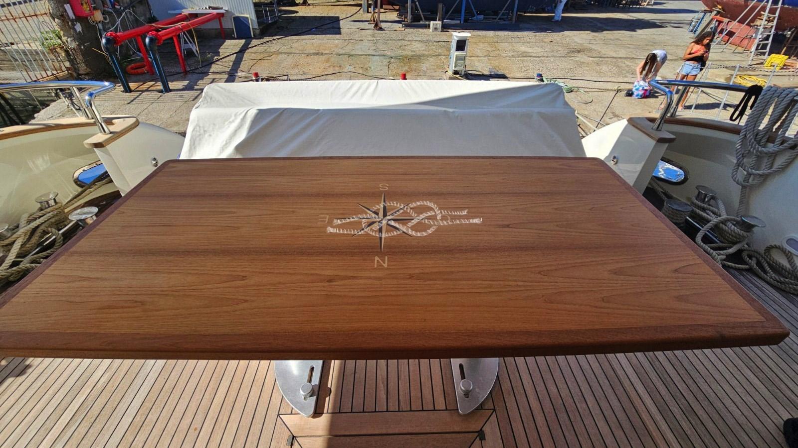 Travaux 2024 : Polissage complet - refonte du pont avant en teck - nouvelles planches et bagues et équilibrage des hélices - nouveau treuil avant - chaîne encore neuve - nouvelle plaque à admission - nouvelle machine à glace sur la passerelle volante.