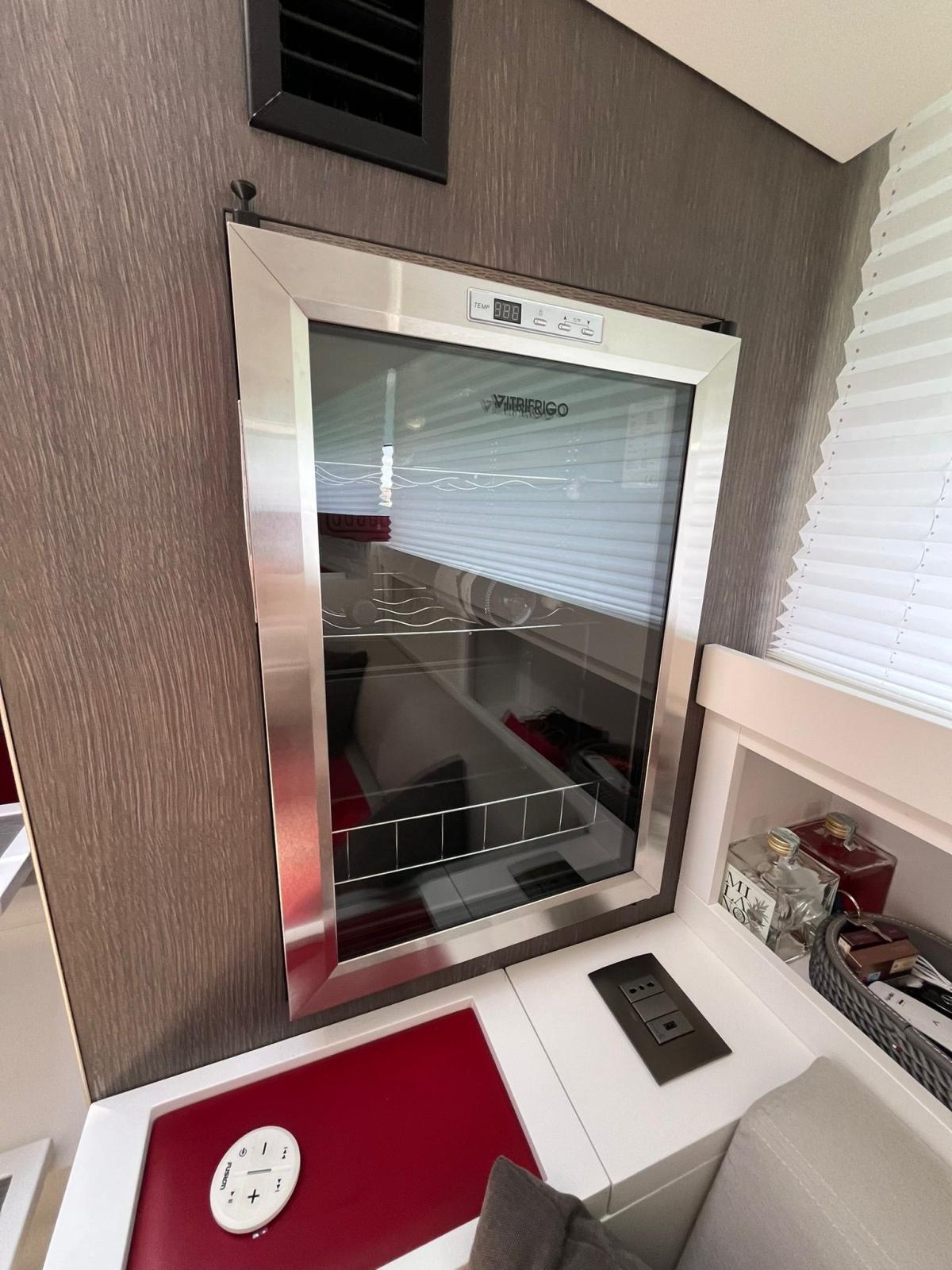 Climatisation - Générateur Mase 7 kW - onduleur - propulseur avant électrique - ancre rétractable en acier inoxydable - onduleur 1500 W - volet Zipwake - Fusion stéréo - plateforme électrohydraulique arrière - lumières de courtoisie - lumières sous-marines - cave à vin - machine à glace - frigo - congélateur - plaque électrique - grill - Teck synthétique Estech - antenne TV - TV LCD - douche Elka avec tige en carbone à la poupe - auvent électrique pour la poupe - T - enveloppe de coque.