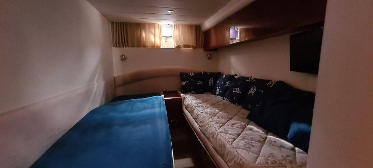 équilibrage de l’hélice - remplacement des batteries, des moteurs et des services - remplacement des courroies, roues, filtres, liquides - démontage des gouvernails avec remplacement du joint torique d’étanchéité - ajout de pompe de cale supplémentaire - coque à zéro - nouveau revêtement du tableau de bord - lumières sous-marines - lumières de courtoisie du cockpit - système stéréo avec 500W et remplacement de tous les haut-parleurs avec ajout de sub woofer - polissage de la coque - remplacement des auvents - remplacement de tous les coussins extérieurs (bain de soleil de poupe et proue, canapé de cockpit, siège conducteur) - installation d’un troisième frigo de cockpit - remplacement de la moquette du salon - remplacement d’une pompe à eau douce dans la salle de bain du propriétaire - création de compartiments de rangement dans le garage arrière - remplacement de l’unité de commande Opac Mare et nouvelle télécommande - installation d’un chargeur de batterie de rechange de 40 Ampères - installation d’une prise de courant 220V sur le pont - nouvelle annexe sur mesure basée sur Lomac 3 m.