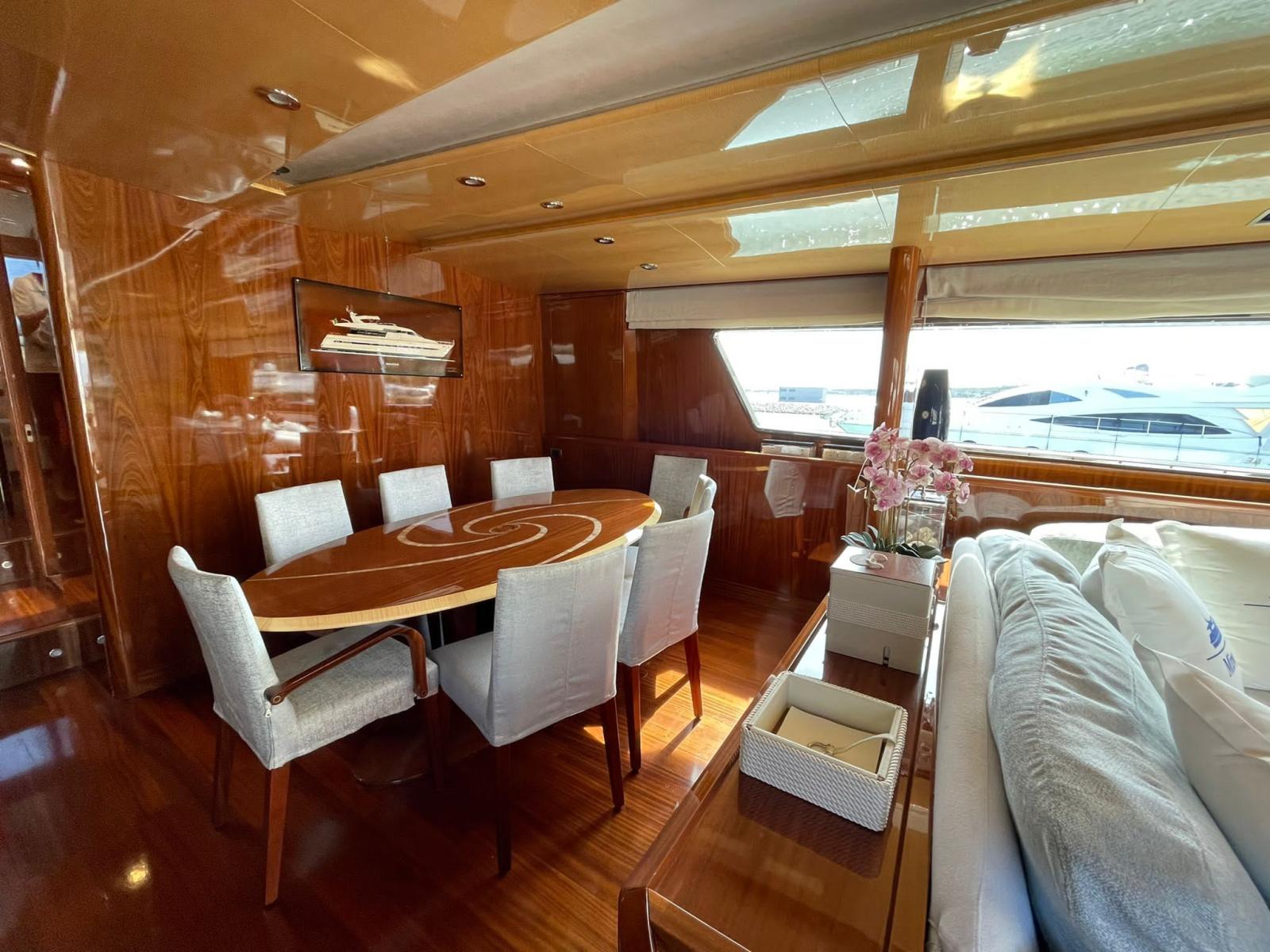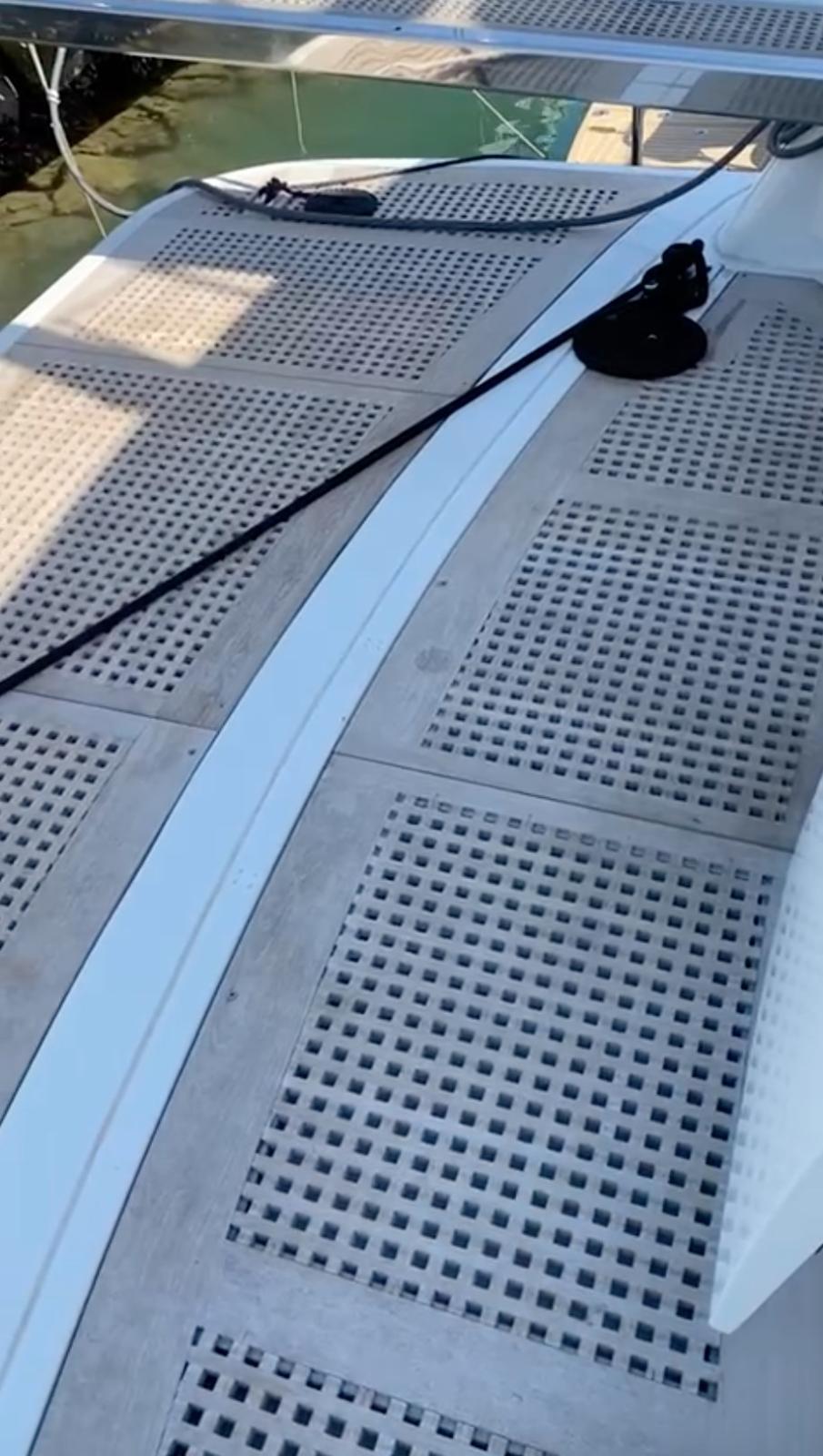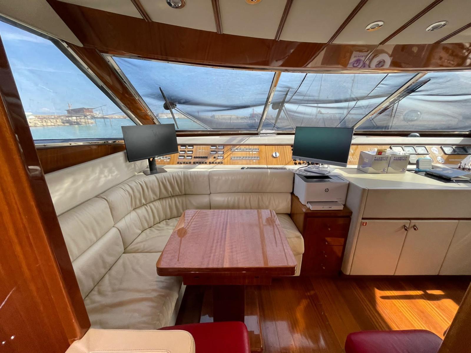 Travaux 2019/2020 : accès à la salle des machines par la poupe - remplacement de toutes les toilettes par des Tecma modernes - tous les feux LED - démontage, vérification, équilibrage des lignes d’arbres (essieux et supports) et des hélices - remplacement des bagues des chevalets - nettoyage des échangeurs de chaleur des moteurs principaux - révision des turbines - construction de deux portes latérales vers le cockpit pour l’accès à bord lors de l’amarrage sur le côté - remplacement de toutes les batteries (moteurs, - remplacement de tous les meubles et appareils de cuisine - remplacement des deux ancres d’amarrage et des chaînes associées - construction d’un toit bimini fixe sur le poste de pilotage du pont volant - remplacement de tous les réservoirs d’eaux grises et noires - rénovation des logements de l’équipage - installation d’un nouveau dessalinisateur Idromar - remplacement des manettes des gaz par électronique - installation du propulseur de poupe - nouveaux chargeurs et onduleurs - révision de tous Pompes embarquées - Troisième poste de contrôle à l’arrière et quatrième poste sans fil - Remplacement de tous les robinets et vannes - Remplacement des joints hydrauliques des essieux.