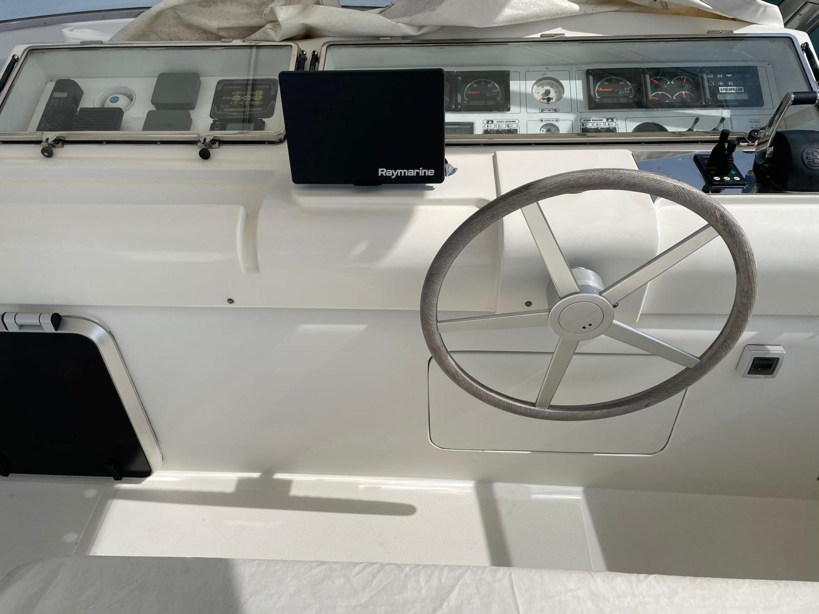 Alarme moteur, Alarme de pompe de cale, 2 Ancre, Ligne d'arbre de rechange, Eau sous pression, Passavant en teck, Douche de cockpit, Double barre à roue, Flaps hydrauliques, Grue de flybridge, Extincteur(s) fixe(s), Lavage de chaine, Éclairage de courtoisie, Spots sous-marins, Passerelle, Plateforme arrière, Pompe de cale automatique, Porte latérale, Porte latérale, Cockpit en teck, Prise de quai, Connexion eau sous pression à quai, Guindeau électrique, Echelle de bain, table de cockpit, Annexe (Zodiac 4,20 m con FB Mercury 20 hp), Corne, Winch électrique arrière.