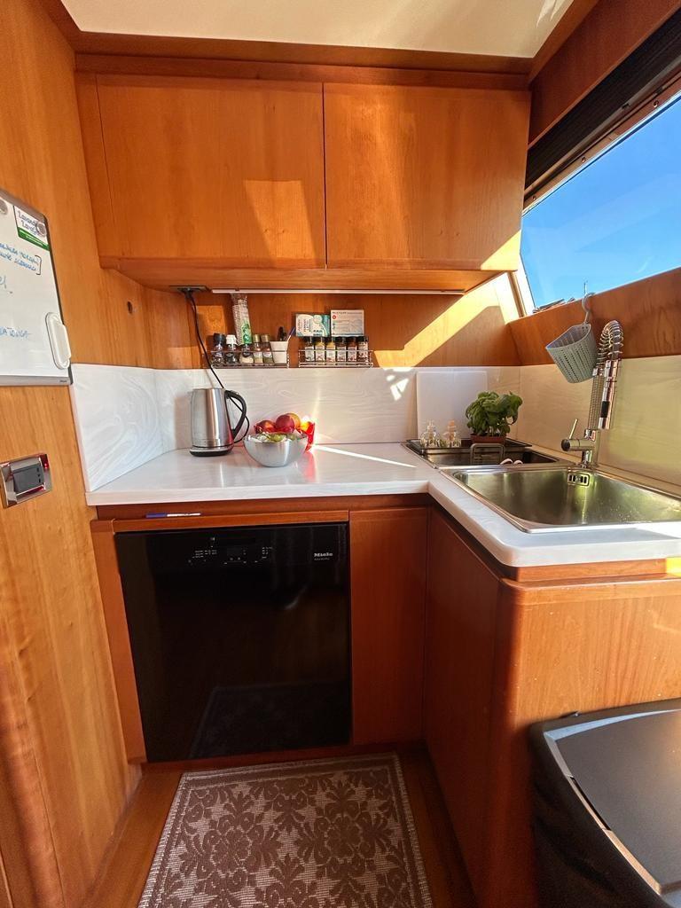 Climatisation - bossoir sur le flybridge - amarrage arrière - réfrigérateur intérieur et extérieur - machine à glaçons - minibar dans la cabine propriétaire - lave-linge Miele - lave-vaisselle - plaque vitrocéramique - four - passerelle hydraulique escamotable - aspirateur central - dessalinisateur 130 L/h - TV ANTENNE SAT - TV TV - Générateurs Kohler 21 et 17,5 kW - système de caméra de la salle des machines.
