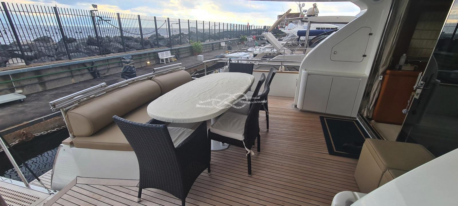 Alarme moteur, Alarme de pompe de cale, Eau sous pression, 22 Batteries, Passavant en teck, Douche de cockpit, Double barre à roue, Hélice de rechange, Phare de poursuite, Flaps hydrauliques, Grue de flybridge, Extincteur(s) fixe(s), Lavage de chaine, Éclairage de courtoisie, Passerelle (elettroidraulica), Plateforme arrière, Pompe de cale automatique, Porte latérale, Porte latérale, Cockpit en teck, Prise de quai, Connexion eau sous pression à quai, Rollbar, Guindeau électrique, Echelle de bain, table de cockpit, Annexe (Zodiac Yacht Line 3), Filières avec sortie latèrale, Corne, Winch électrique arrière.