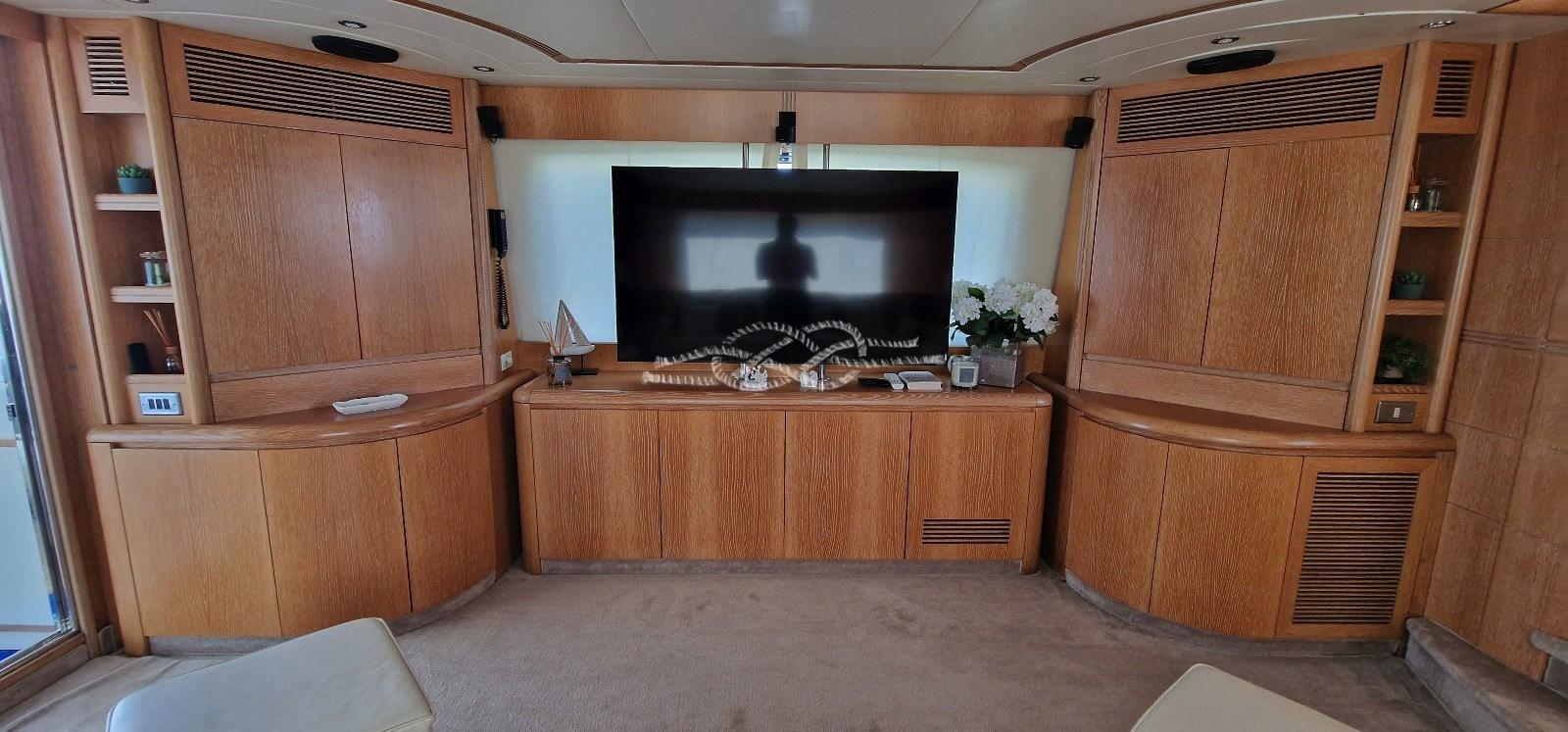 2017/18 : Entretien du moteur et du générateur - Nettoyage des échangeurs de chaleur - Alternateurs - Remplacement de toutes les prises d’eau de mer - Révision du chargeur de batterie - Révision des autoclaves - Révision de la climatisation - Révision des extincteurs et de la pompe à incendie - Installation de pompes de cale automatiques - Révision des générateurs - Révision du dessalinisateur - Lumières de courtoisie à LED - Installation de projecteurs sous-marins - Installation d’une écriture arrière rétroéclairée par LED - Polissage des pavois et de la superstructure - Remplacement du frigo de la cuisine - Remplacement du plan de travail en marbre de la cuisine - Interphone dans toutes les cabines - Nouveaux téléviseurs LCD dans le salon et toutes les cabines - Remplacement de toutes les vannes des toilettes - Remplacement du pare-brise en plexiglas - Sellerie du canapé du salon en cuir - Installation d’un purificateur d’eau et de gaz - Système stéréo alpin - Remplacement de l’électronique du tableau de bord et du flybridge - Peinture du tableau de bord - Révision du radeau - Remplacement des matelas - Remplacement des rideaux de cabine - Remplacement des rideaux de cabine Machine à laver - installation de portes en acier inoxydable et en plexiglas sur les escaliers arrière.