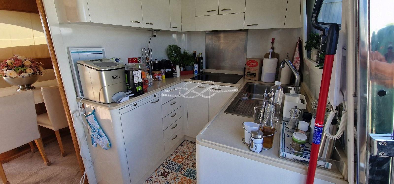 Propulseur hydraulique d’étrave et de poupe - climatisation - passerelle hydraulique - bossoir de flybridge - machine à glaçons - réfrigérateur et congélateur - lave-vaisselle - lave-linge - Hi-Fi - TV LCD - générateurs Kohler 2 x 20 kW.
