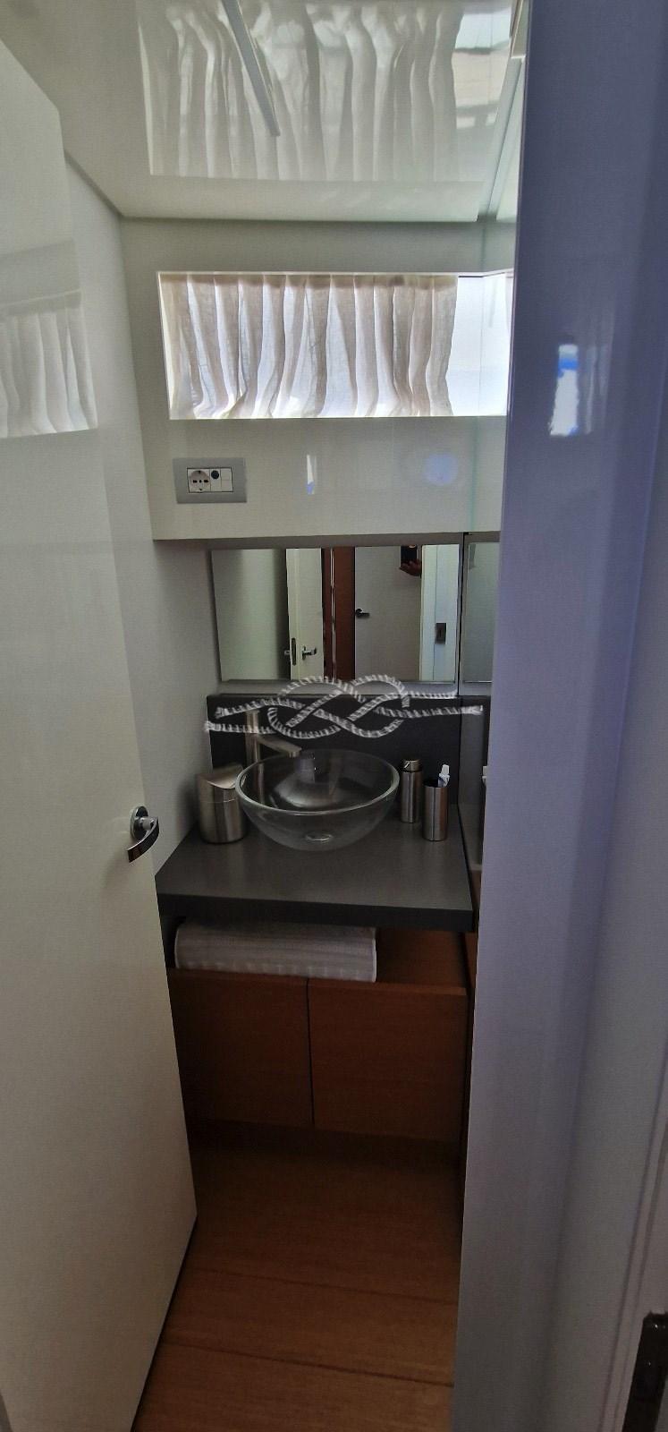 Cabine principale avec lit double et salle de bains - cabine invités avec deux lits en forme de V et salle de bains - dinette.