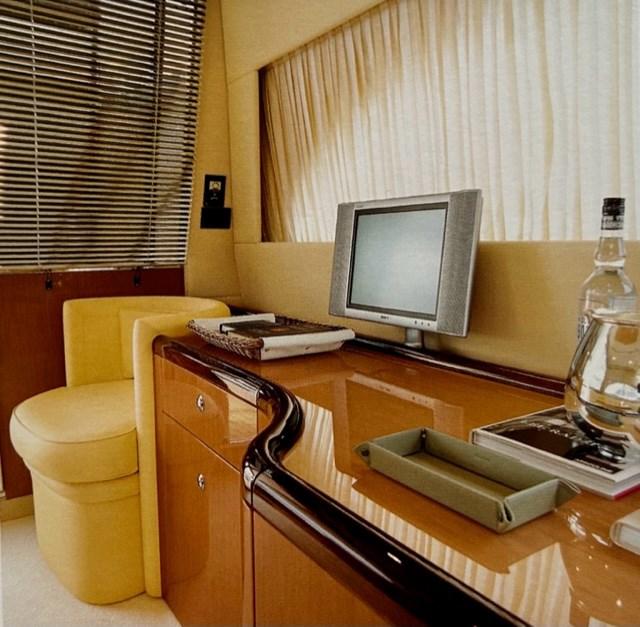 Alarme moteur, Alarme de pompe de cale, Eau sous pression, Passavant en teck, Douche de cockpit, Flaps hydrauliques, Extincteur(s) fixe(s), Éclairage de courtoisie, Passerelle, Plateforme arrière, Porte latérale, Cockpit en teck, Prise de quai, Connexion eau sous pression à quai, Rollbar, Guindeau électrique, Echelle de bain, table de cockpit, Annexe, Corne, Winch électrique arrière.