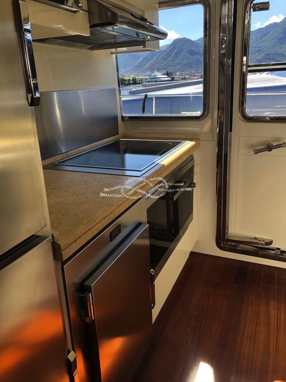 Alarme moteur, Alarme de pompe de cale, Eau sous pression, 23 Batteries, Système de vidange, Passavant en teck, Douche de cockpit, Double barre à roue, Propulseur d'étrave (idraulica), Flaps hydrauliques, Grue de flybridge, Extincteur(s) fixe(s), Indicateurs de flaps, Spots sous-marins, Passerelle, Plateforme arrière, Porte latérale, Porte latérale, Cockpit en teck, Prise de quai, Connexion eau sous pression à quai, Rollbar, Guindeau électrique, Echelle de bain, Selles pour Annexe, table de cockpit, Annexe (con fuoribordo), Corne, Winch électrique arrière.