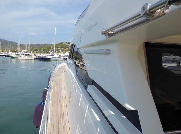 Travaux 2019/2020 : changement de batterie - caoutchoutage du pont - rénovation du pont en teck du pont volant et arrière - révision du propulseur d’étrave avec remplacement des batteries dédiées - atterrissage du générateur pour une révision extraordinaire - installation du deuxième ventilo-convecteur dans le carré.