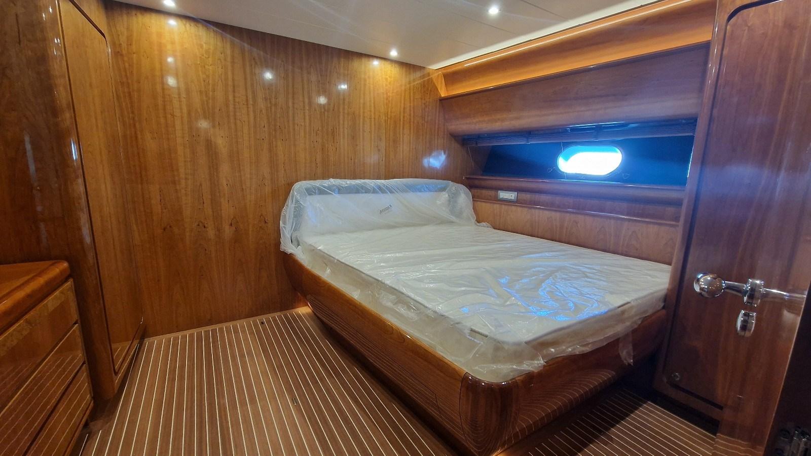 cabine principale avec lit double, salle de bain et dressing - cabine VIP avec lit double et salle de bain - cabine invités avec deux lits plats, troisième lit escamotable et salle de bain - cabine invités avec deux lits plats et salle de bain - toilettes de jour.