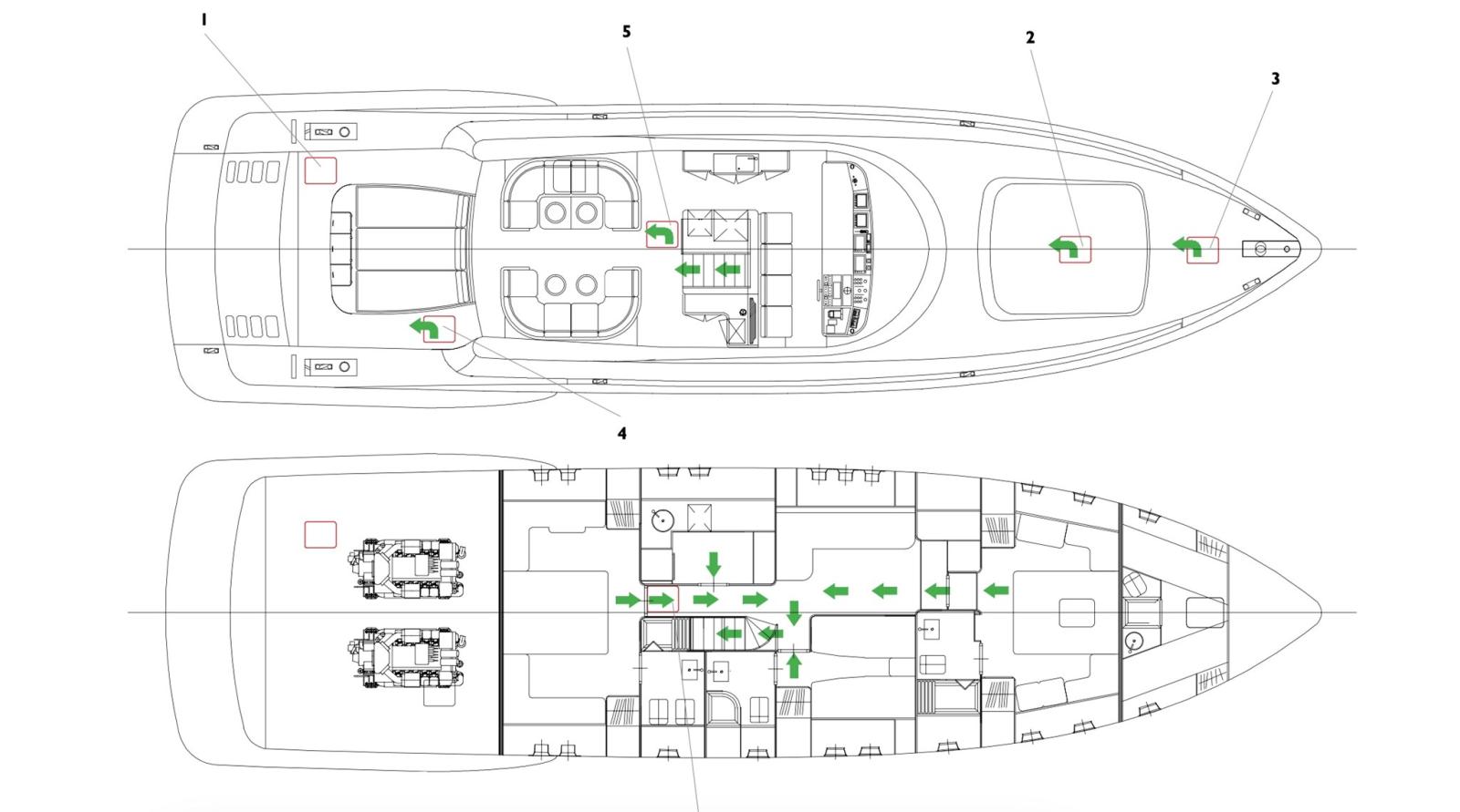 Alarme gaz, Alarme moteur, Alarme de pompe de cale, Eau sous pression, Douche de cockpit, Phare de poursuite, Flaps hydrauliques, Garage à annexe, Hard top, Extincteur(s) fixe(s), Indicateurs de flaps, Lavage de chaine, Lavabo dans le cockpit, Passerelle, Plateforme arrière, Pompe de cale automatique, Pompe de cale manuelle, Onduleur, Guindeau électrique, Echelle de bain, Selles pour Annexe, table de cockpit, Corne, Winch électrique arrière.