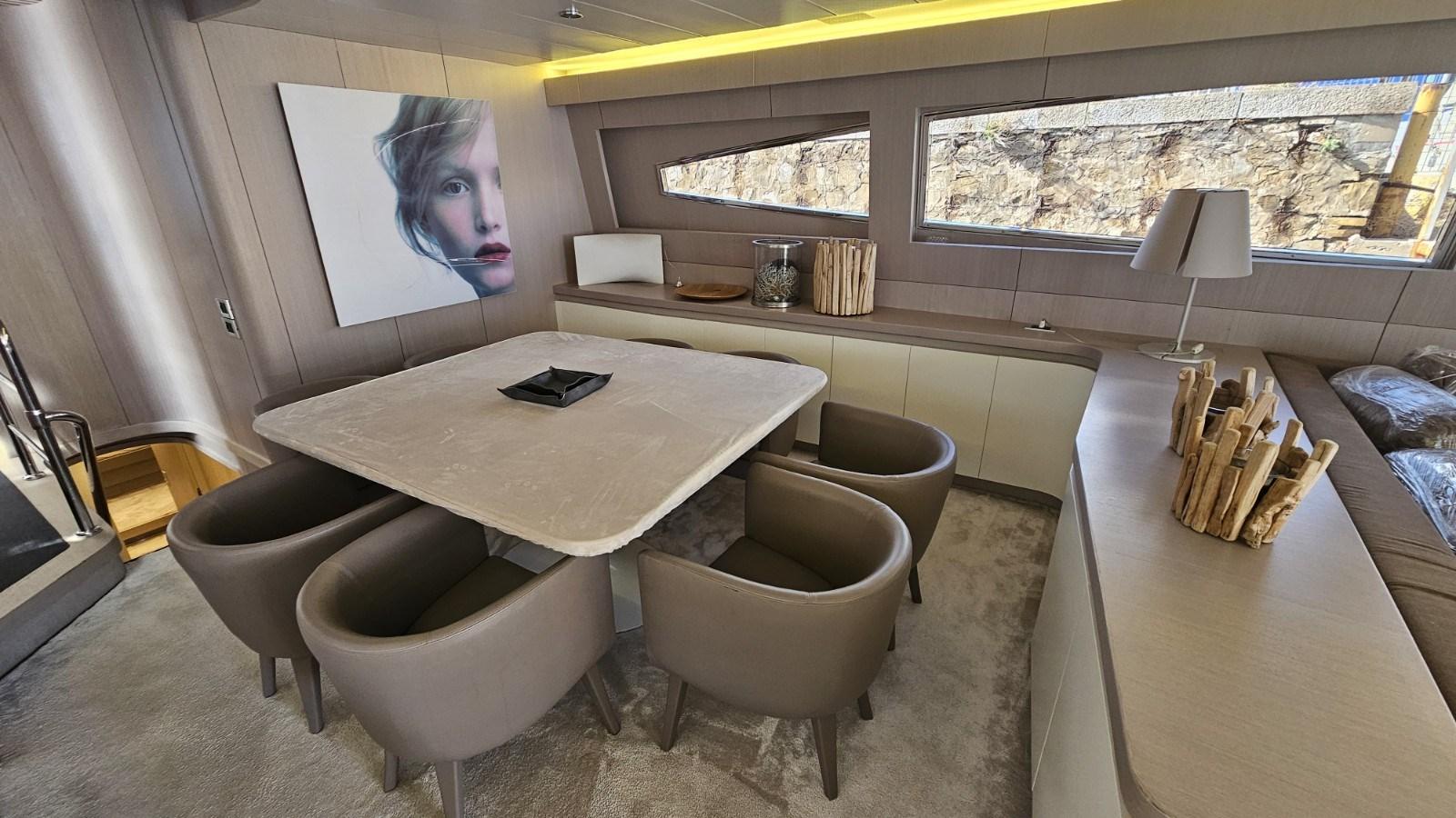 Antenne TV satellite - TV LCD - climatisation Air chaud/froid - propulseur d’étrave - plate-forme arrière avec élévateur d’annexe - stabilisateur gyroscopique Smartgyro - machine à laver - réfrigérateur et congélateur dans la cuisine - réfrigérateur et congélateur dans la salle des machines - réfrigérateur à la volée - mouche en T - plaque de cuisson électrique 5 feux - four 90 cm - lave-vaisselle.