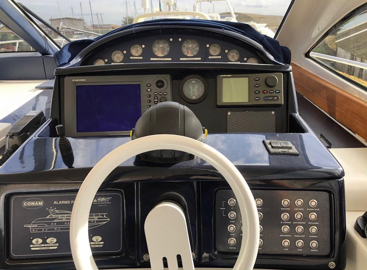 Alarme moteur, Eau sous pression, Douche de cockpit, Flaps hydrauliques, Hard top, Indicateurs de flaps, Passerelle, Plateforme arrière, Cockpit en teck, Prise de quai, Connexion eau sous pression à quai, Guindeau électrique, Echelle de bain, table de cockpit, Filières avec sortie latèrale, Corne, Winch électrique arrière.