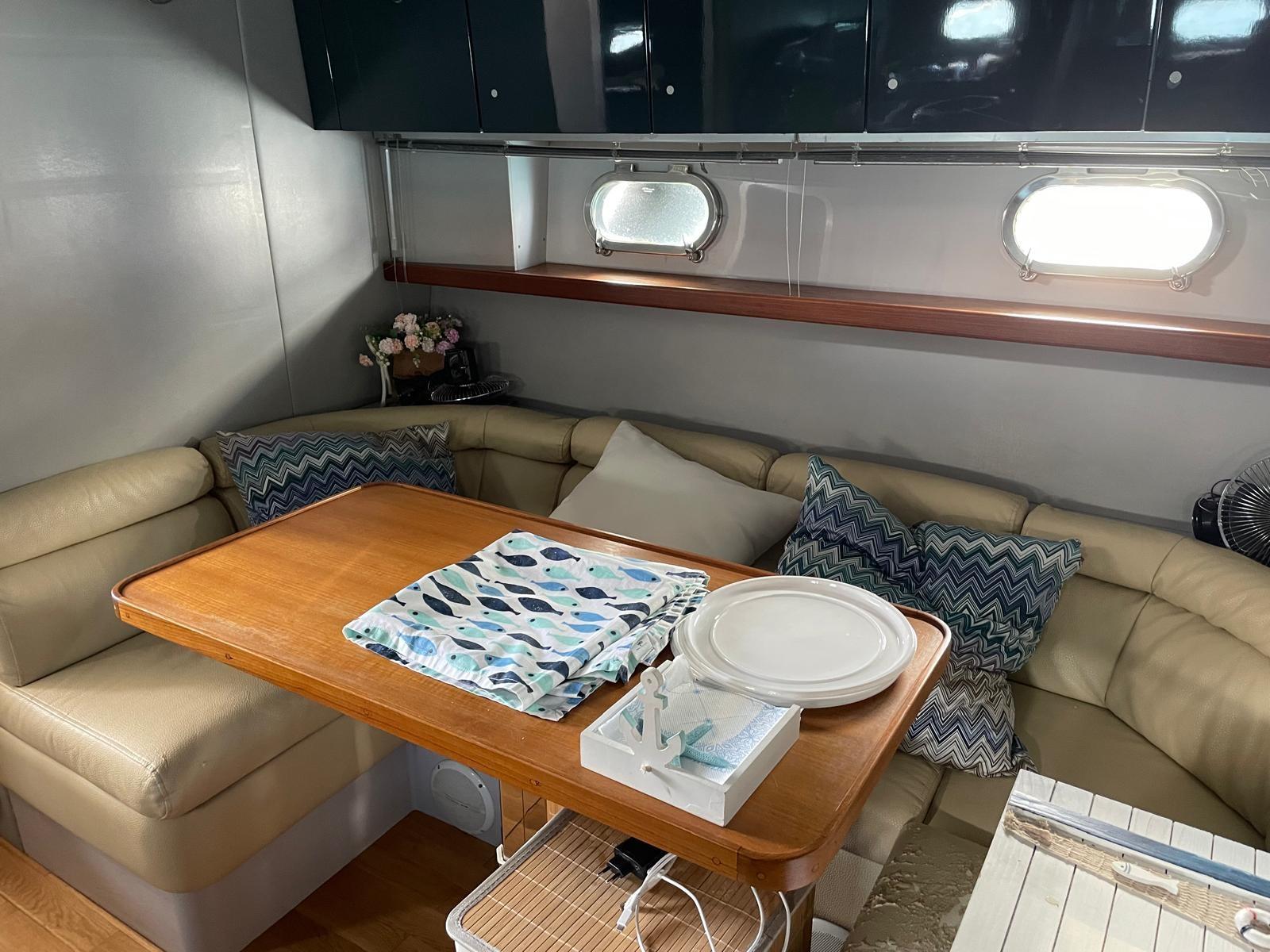 Alarme moteur, Eau sous pression, Douche de cockpit, Flaps hydrauliques, Garage à annexe, Éclairage de courtoisie, Passerelle, Cockpit en teck, Prise de quai, Connexion eau sous pression à quai, Rollbar, Guindeau électrique, Echelle de bain, table de cockpit, Annexe, Corne.
