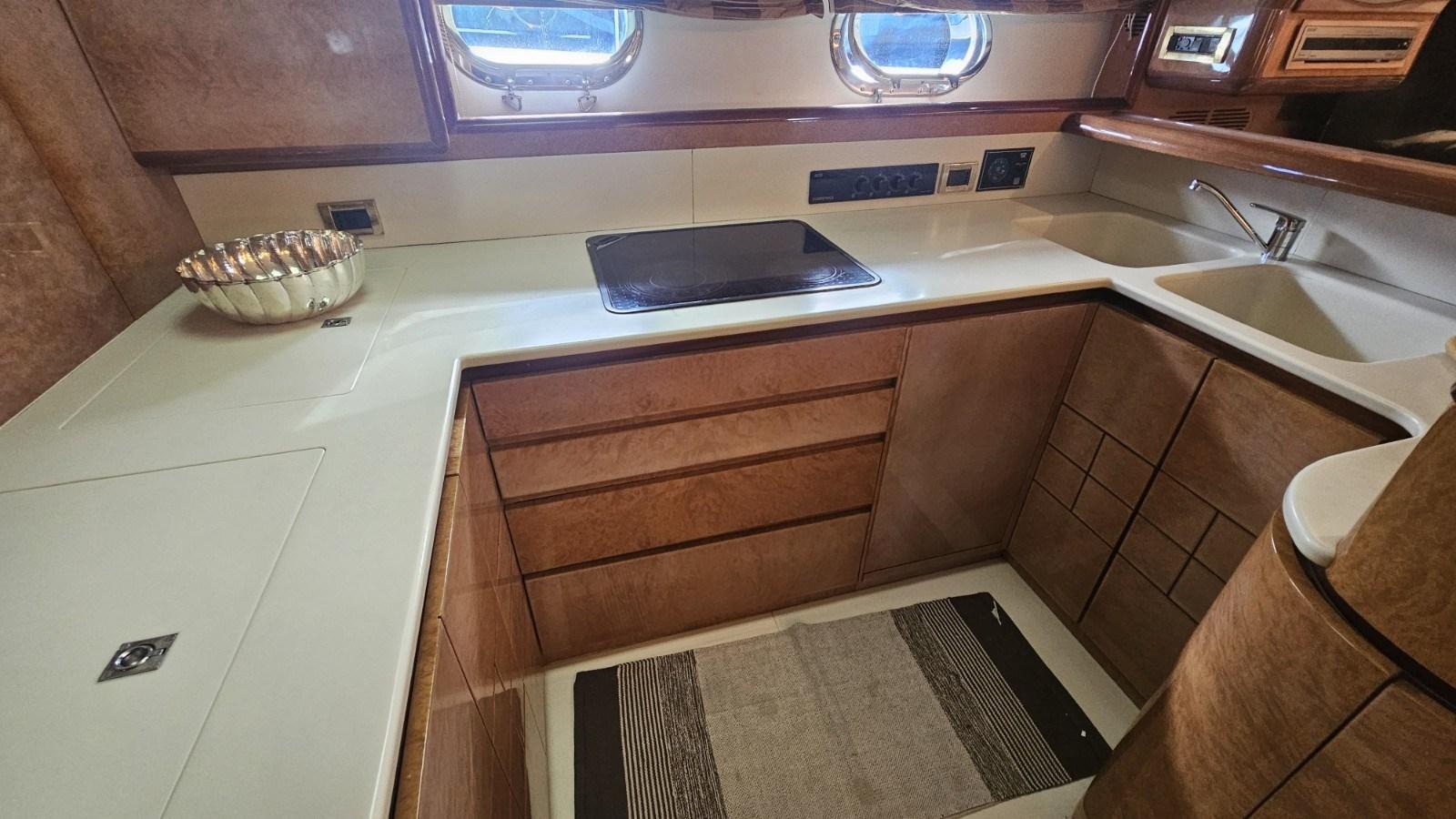 Climatisation Condaria - 2 groupes électrogènes Kohler de 15 kW - passerelle électro-hydraulique escamotable - garage à annexe arrière - annexe avec hors-bord - propulseur d’étrave hydraulique - antenne TV satellite - TV LCD - dessalinisateur - meuble bar de cockpit avec évier et réfrigérateur - réfrigérateur - congélateur - plaque de cuisson électrique 4 brûleurs - lave-vaisselle - chaîne stéréo - machine à glaçons - compresseur d’air.