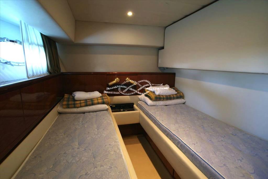 Cuisine avec accès direct au cockpit - cabine d’équipage avant pour deux avec salle de bain - cabine d’équipage avec lit français à l’arrière avec salle de bain.