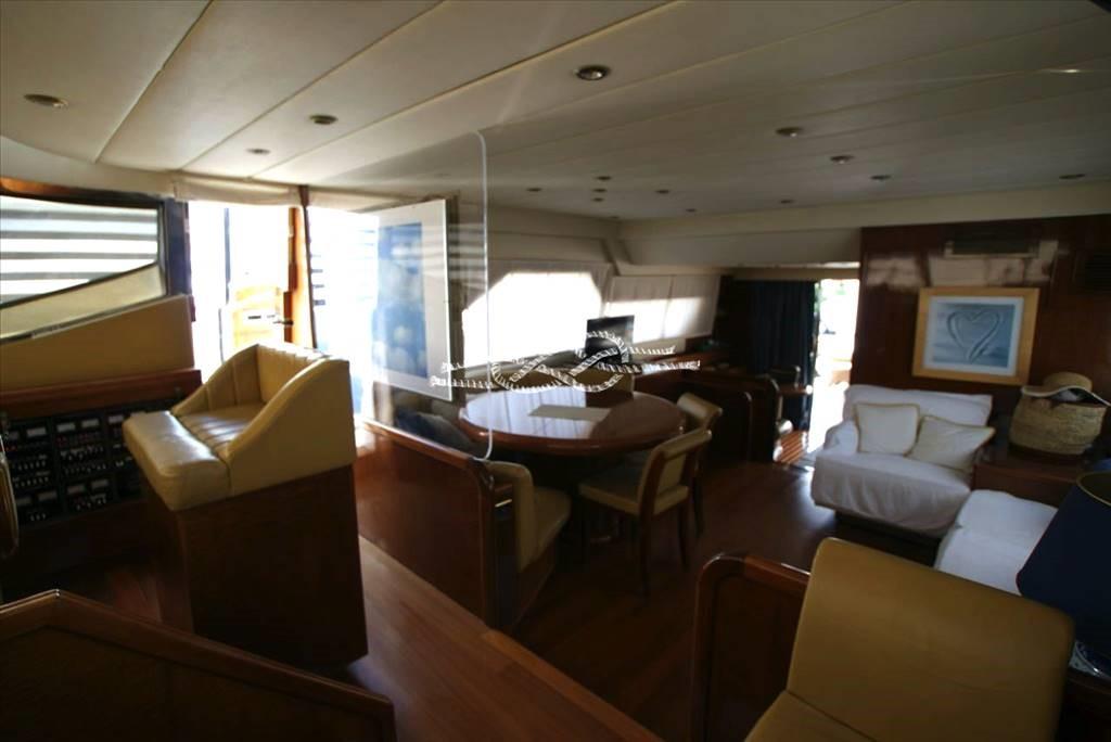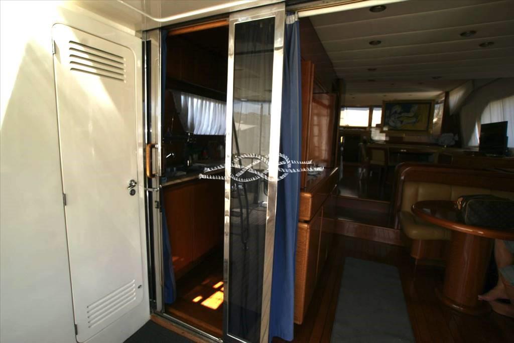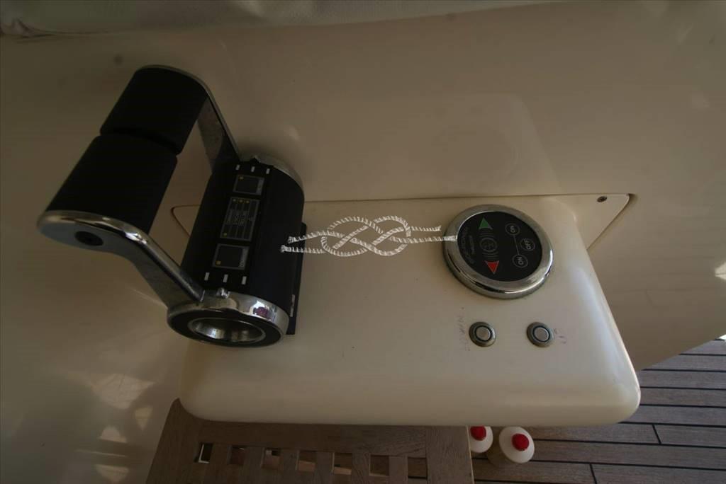 Troisième poste de contrôle à la poupe - propulseur d’avant Vetus - panneau électronique Boening pour vérifier les réservoirs d’eau, carburant, eau noire et eaux grises - caméra de vision de la salle des machines - climatisation - Distributeur d’eau Marinco - groupe électrogène Kohler 17 kW et Onan 12 kW - tender avec Suzuki 40 ch hors-bord - passerelle électrohydraulique Morsaverio - grue mouche Morsaverio - machine à laver - toilettes à eau douce Tecma - 1 réfrigérateur et 2 congélateurs dans la salle des machines - cuisine avec Réfrigérateur, four congélateur et fournecôte à gaz 4 brûleurs - placard avec double réfrigérateur/machine à glaçons, évier et plaque électrique à deux brûleurs en vol - TV - antenne SAT Seatel - décodeur SAT.