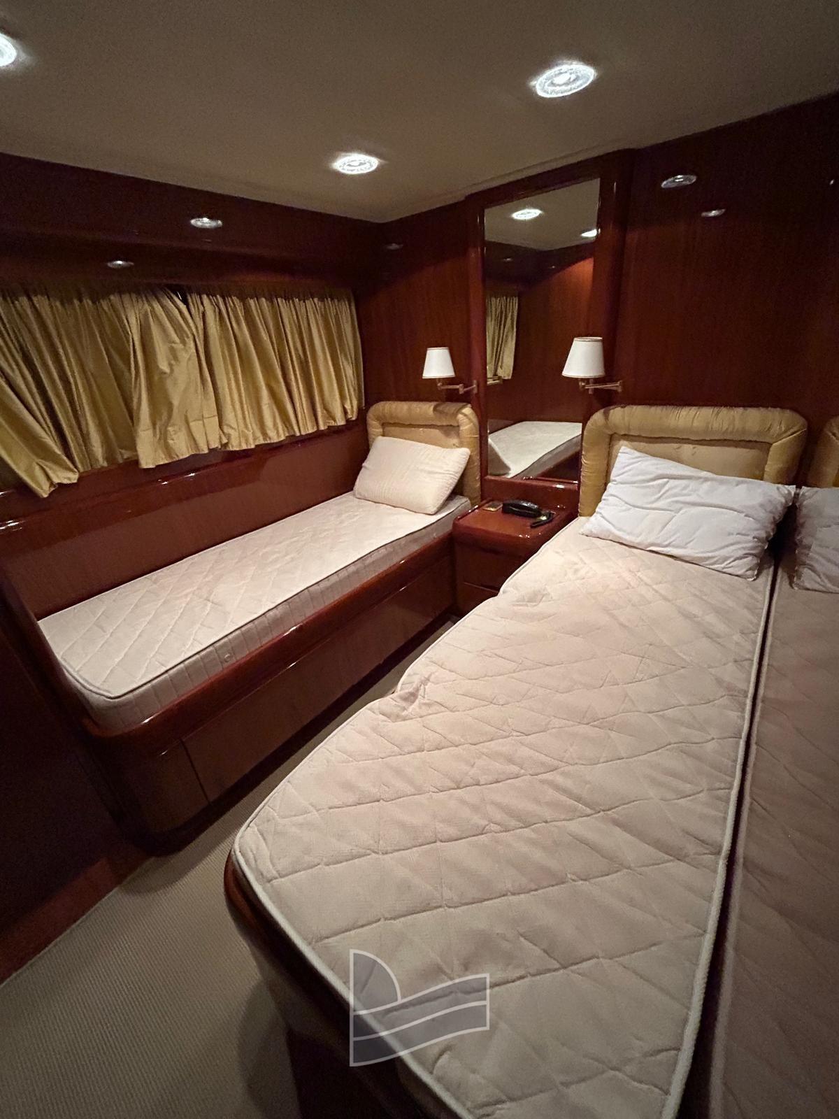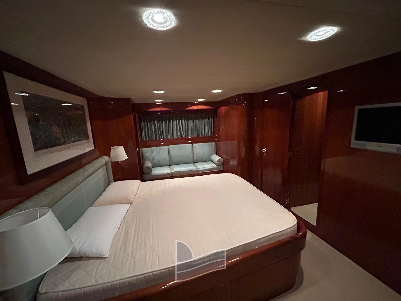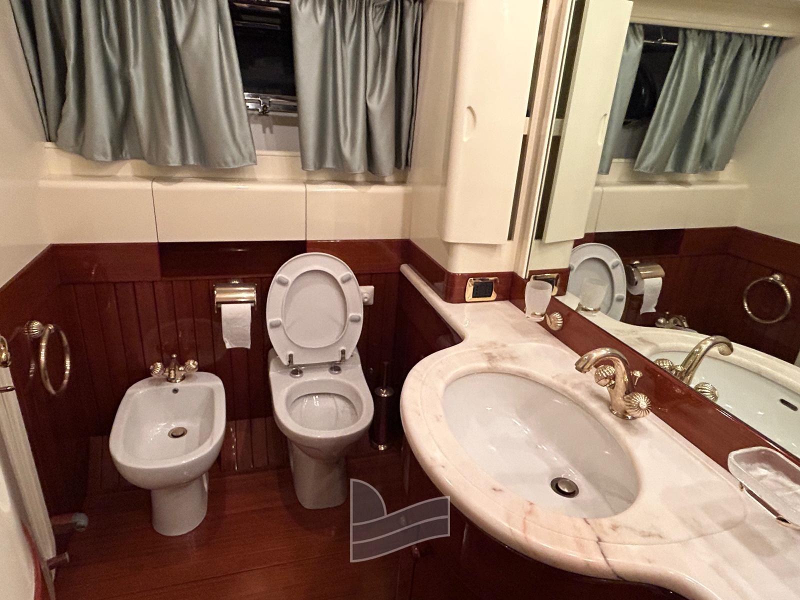 Alarme moteur, Eau sous pression, Passavant en teck, Douche de cockpit, Phare de poursuite, 2 Flaps hydrauliques, Extincteur(s) fixe(s), Lavage de chaine, Passerelle (idraulica a scomparsa), Plateforme arrière (di poppa in teak), Pompe de cale automatique, Pont en teck, Porte latérale, Cockpit en teck, Prise de quai, Onduleur, Guindeau électrique, Echelle de coupée, Echelle de bain, table de cockpit, Corne, Winch électrique arrière, Winch électrique avant.