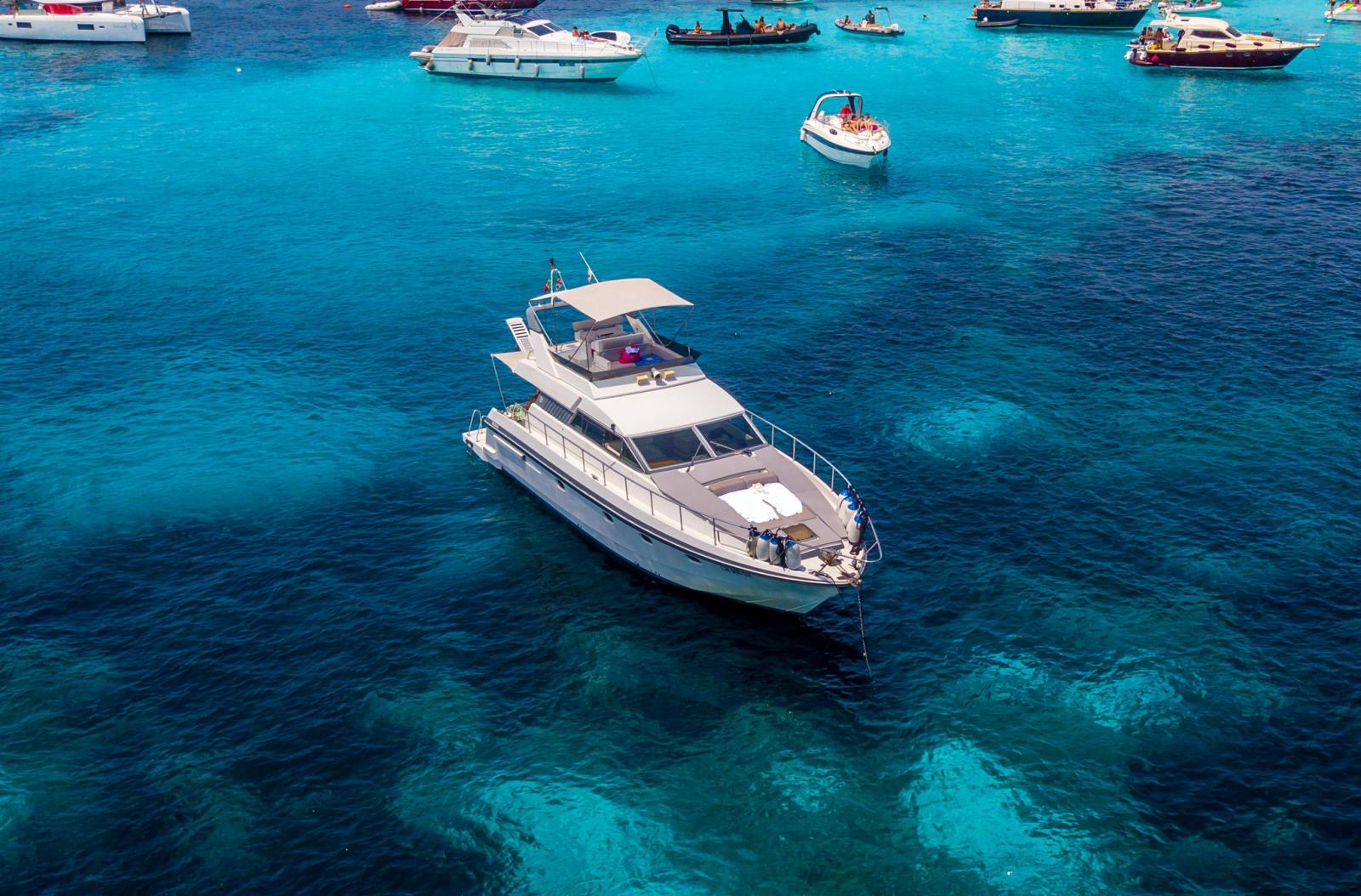 Ce bateau propose trois cabines et deux salles de bains, avec des espaces très grands et confortables dédiés à la convivialité. Les moteurs, deux Caterpillar 380