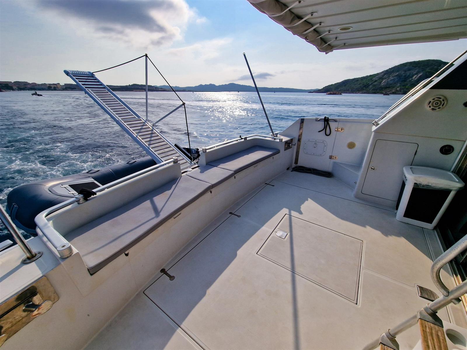 Alarme gaz, 2 Alarme moteur, Alarme de pompe de cale, Eau sous pression, 6 Batteries (150ah), Câble d’alimentation à quai, Filères, Douche de cockpit, Double barre à roue, Phares fixes arrière, 2 Flaps électriques, 2 Indicateurs de flaps, Lavage de chaine, Lavabo dans le cockpit, Éclairage de courtoisie, 6 Défenses, Passerelle, Plateforme arrière, Pompe de cale automatique, Porte latérale, Prise de quai, Connexion eau sous pression à quai, Guindeau électrique, Echelle de bain, table de cockpit, Table pliante de salon, Filières avec sortie latèrale, Corne, Winch électrique avant.