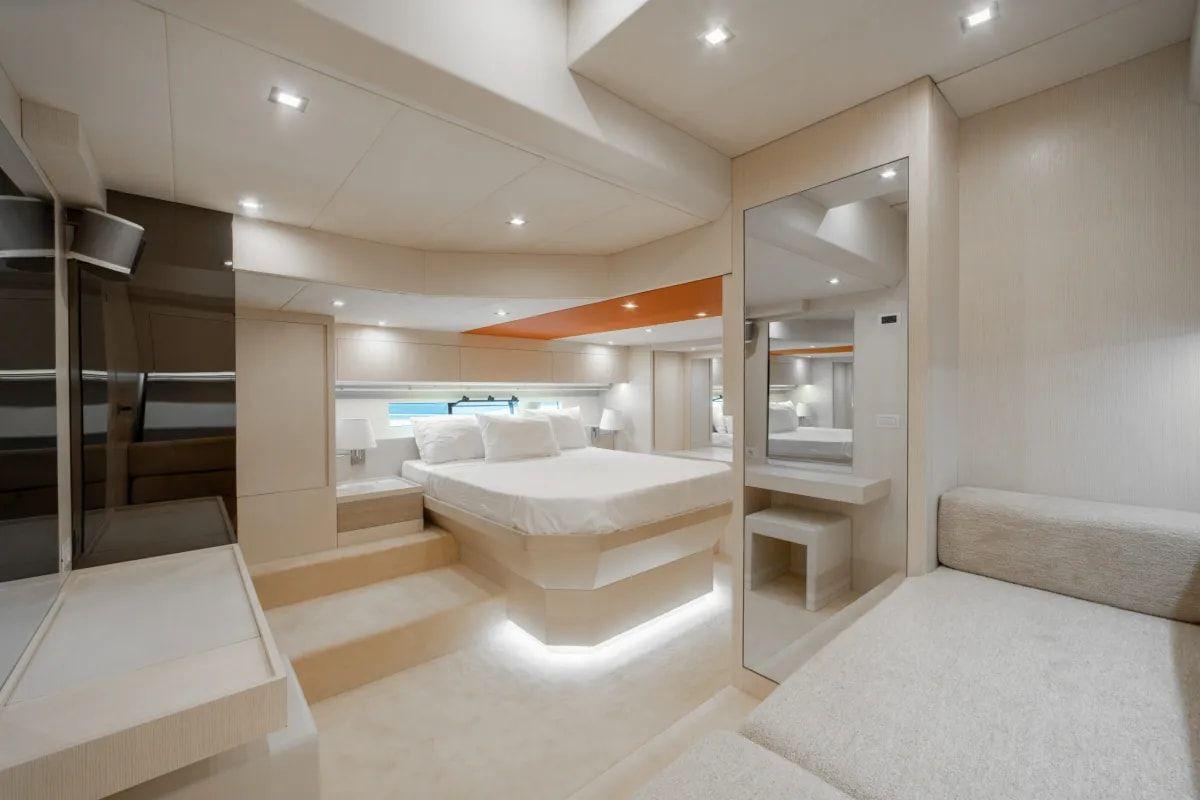 Inside, the layout is designed for both comfort and exclusivity. A spacious master cabin offers refined luxury, while a dedicated crew cabin ensures practicality on longer voyages. High-quality finishes, modern bathrooms, and large windows create a bright and welcoming atmosphere for an unforgettable stay on board.