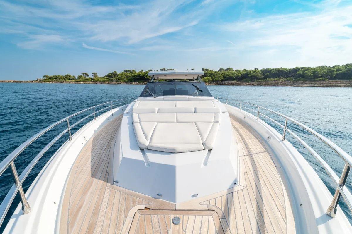 On deck, wide sunbeds, generous lounge areas, and a walkaround design provide freedom of movement and ample space for entertaining or relaxation. The hardtop with integrated roll-bar combines functionality with style, making every detail both elegant and practical.